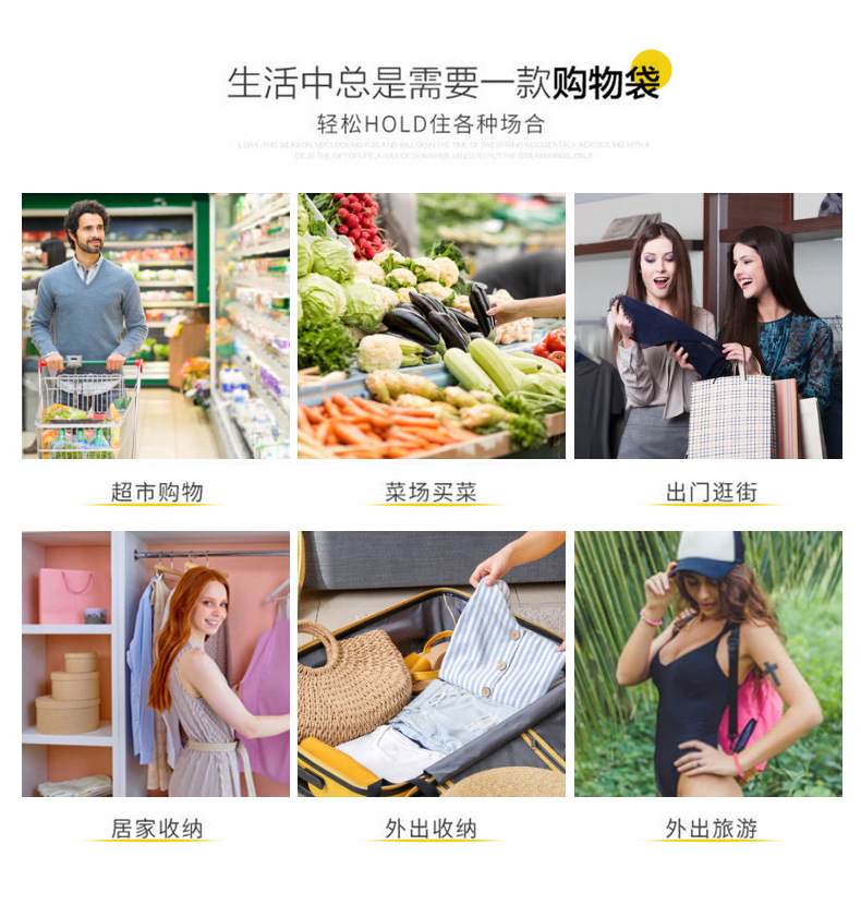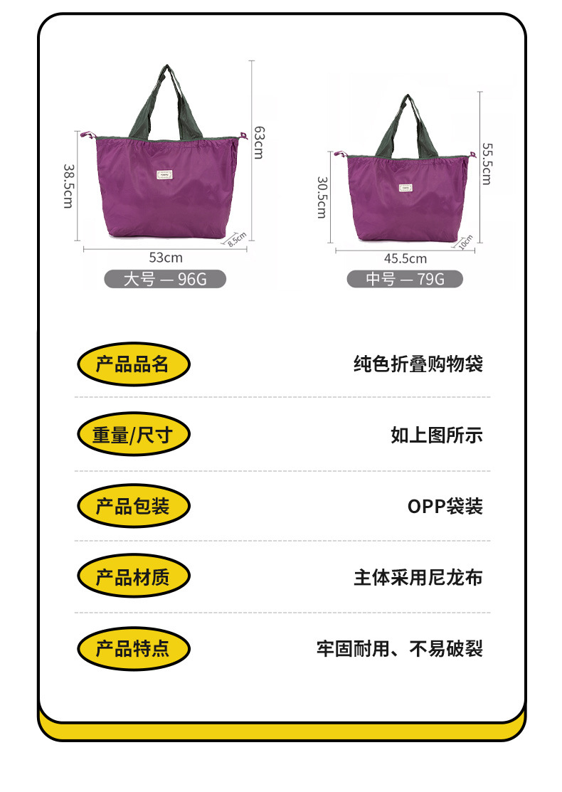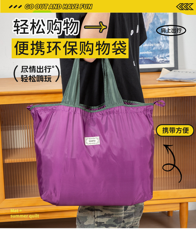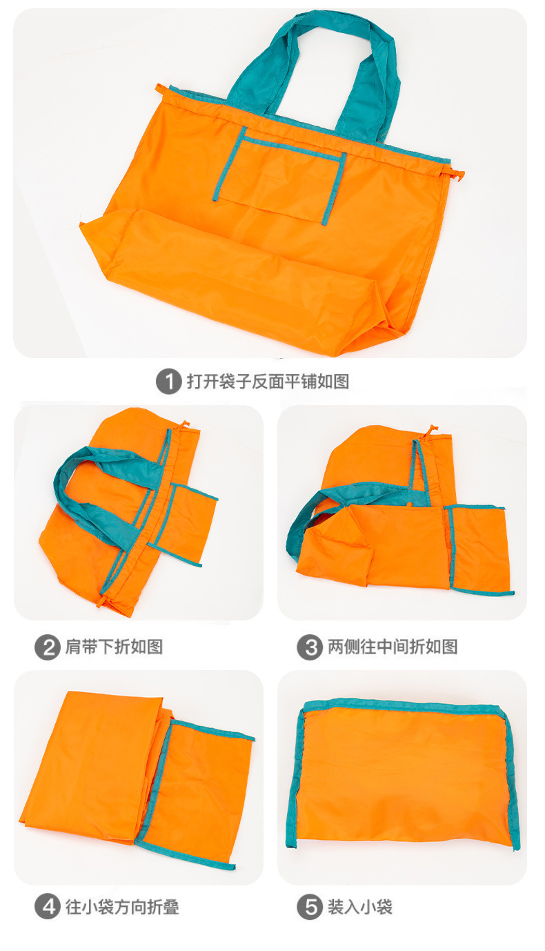 단색 접이식 쇼핑백 방수 수납 가방 휴대용 슈퍼마켓 장바구니 대용량 조임끈 친환경 핸드백