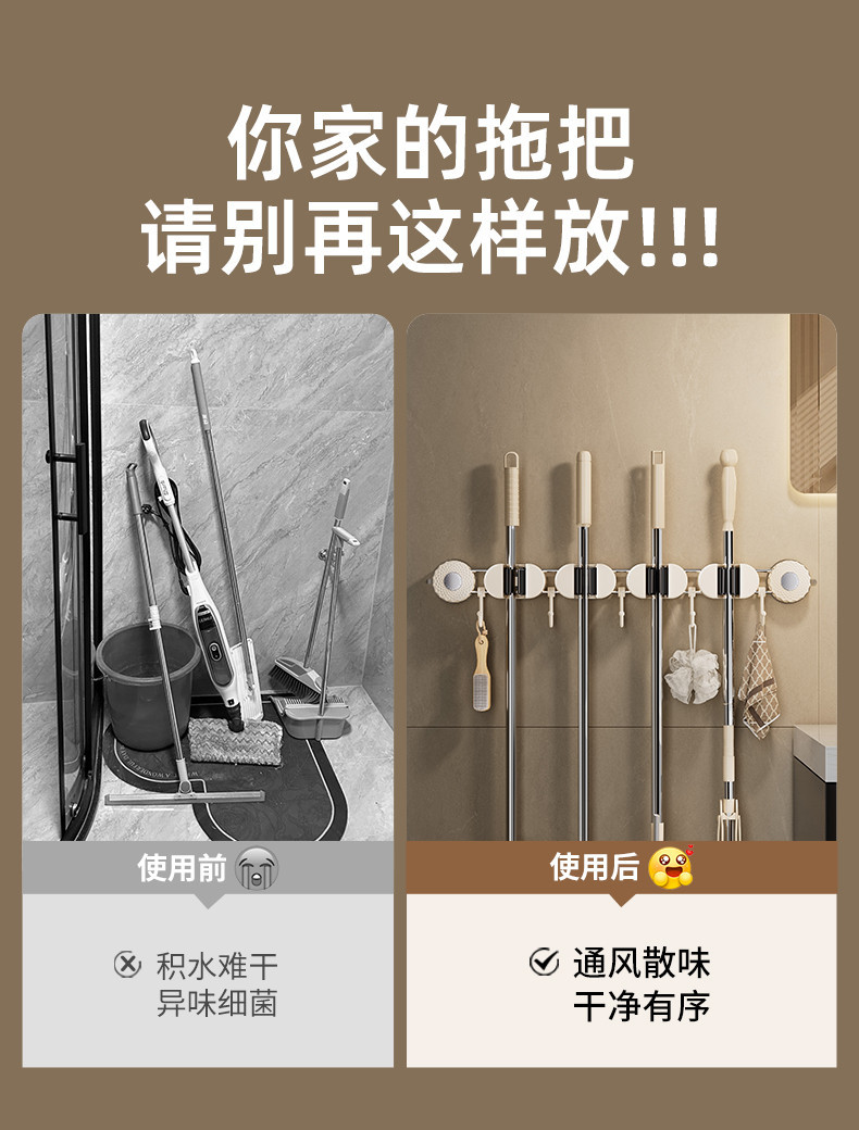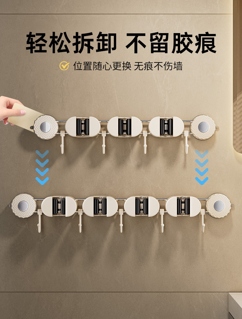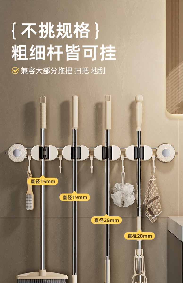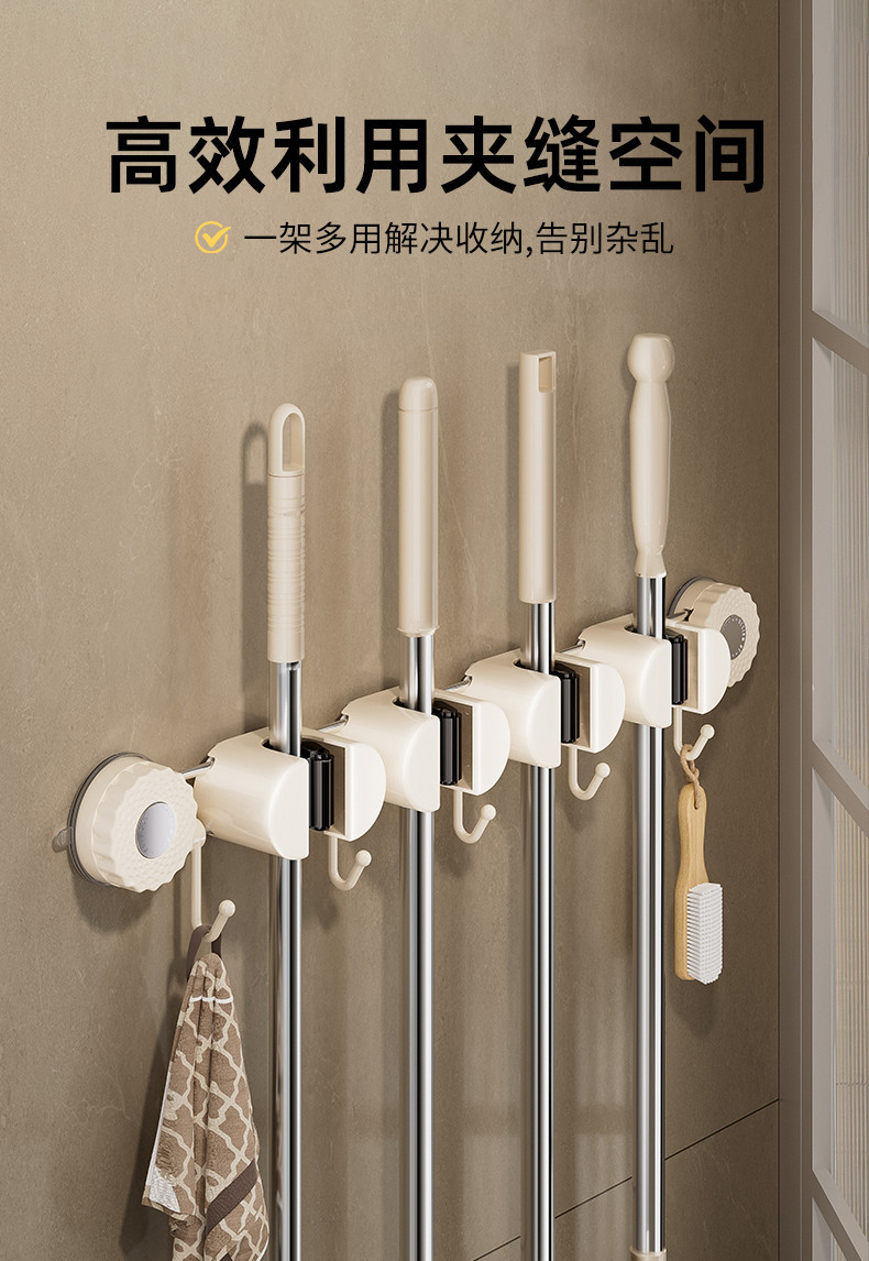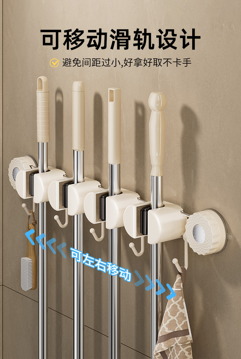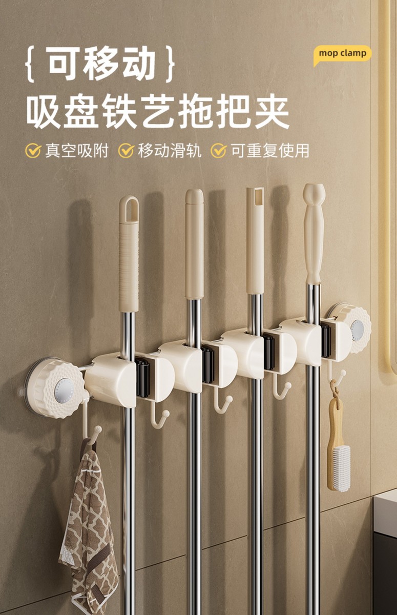 걸레걸이, 걸레벽걸이클립, 다기능 슬라이딩 빗자루걸이, 욕실욕실문 뒷면수납선반, 흡착판