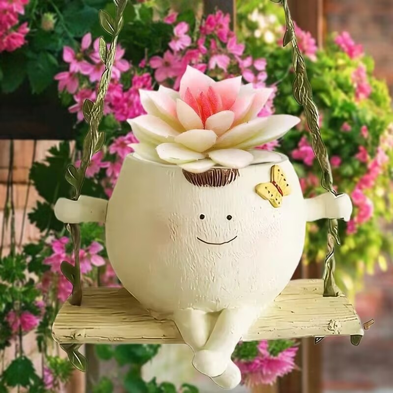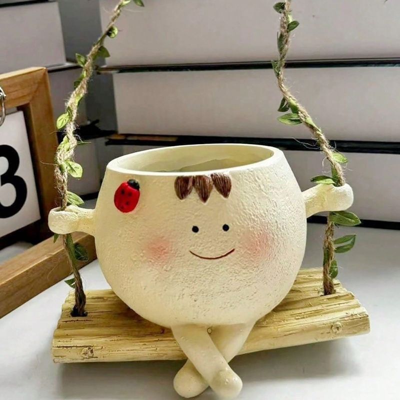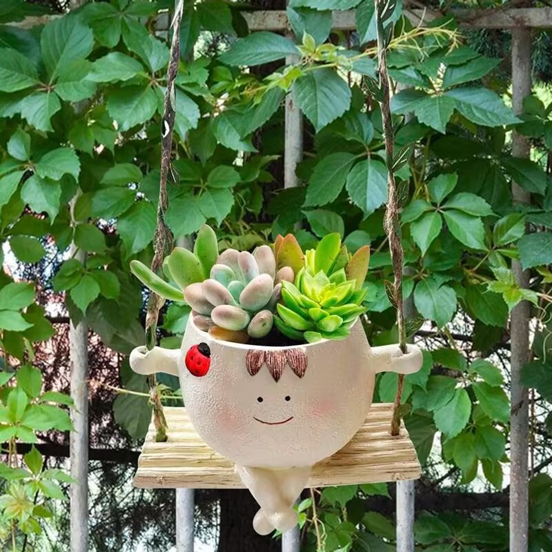 발코니 다육 스윙 화분 웃는 얼굴 장식품 안뜰 맞춤형 화분 정원 창의적이고 귀여운