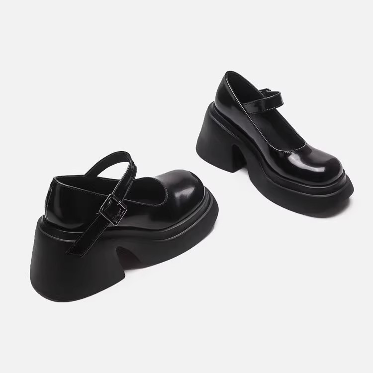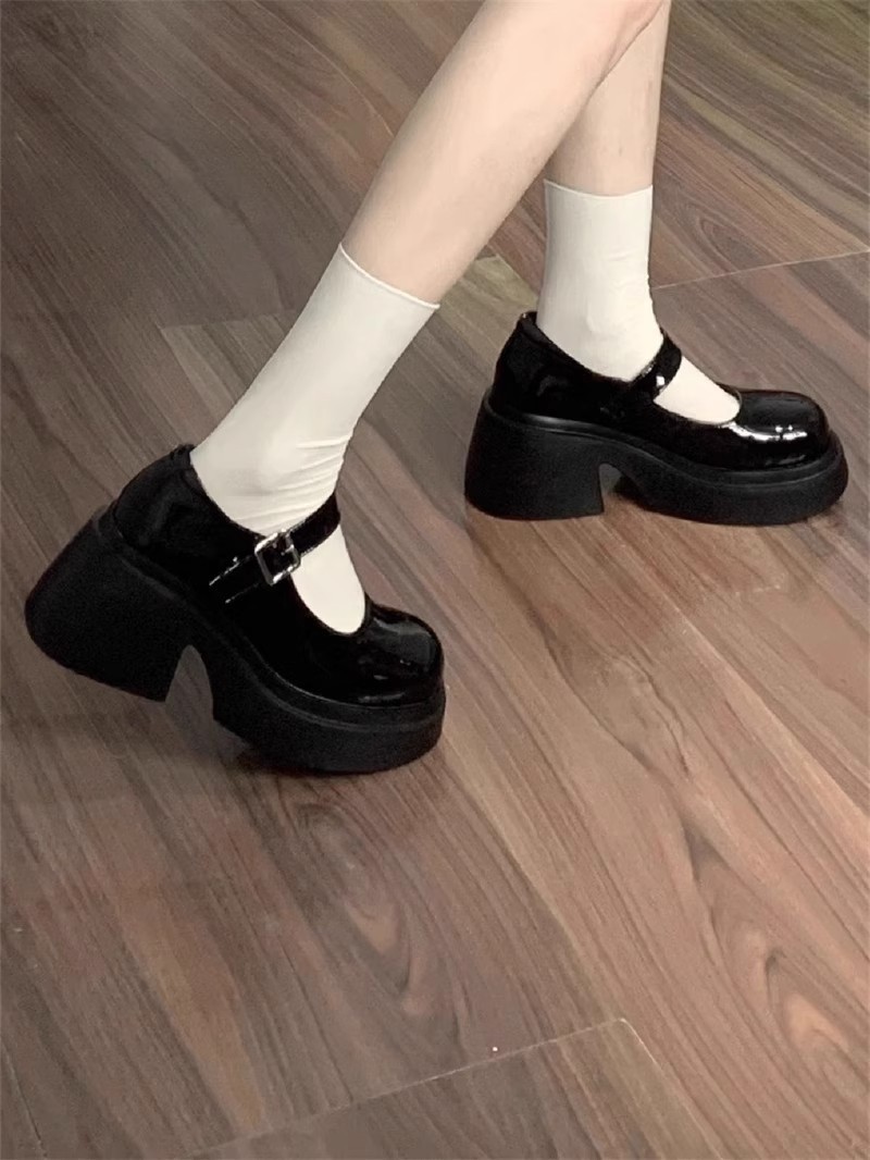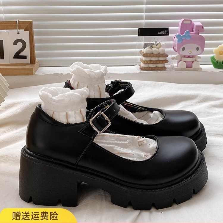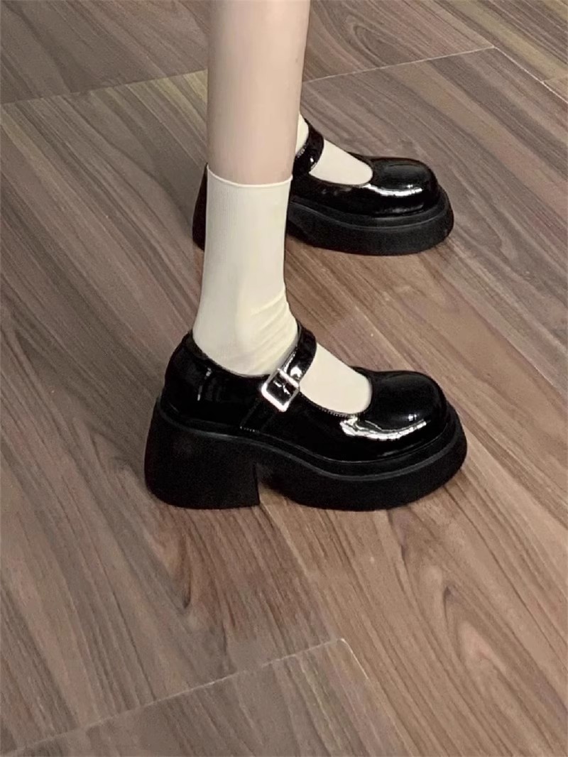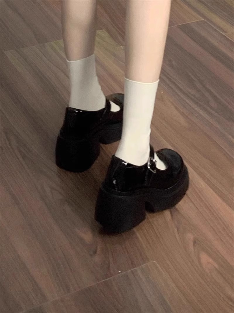 여성을위한 두꺼운 밑창 작은 가죽 신발 2025 봄 새로운 하이힐 메리 제인 신발 jk 신발 유니폼 싱글 신발 두꺼운 굽스토어 가기