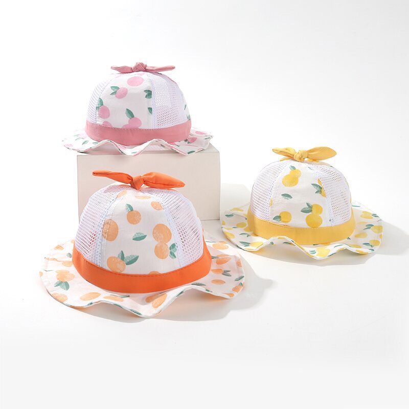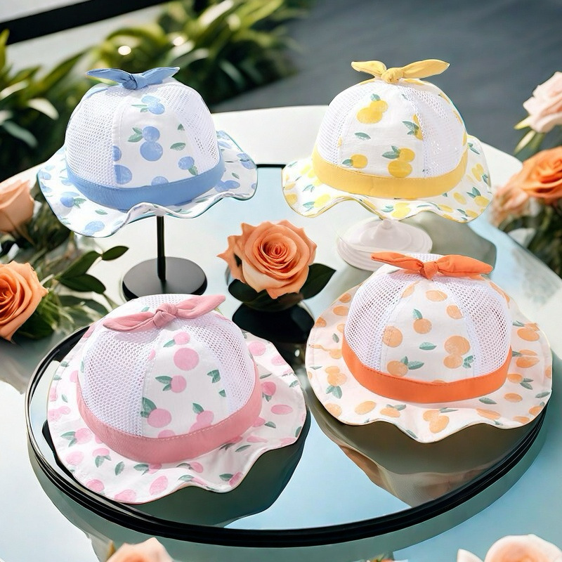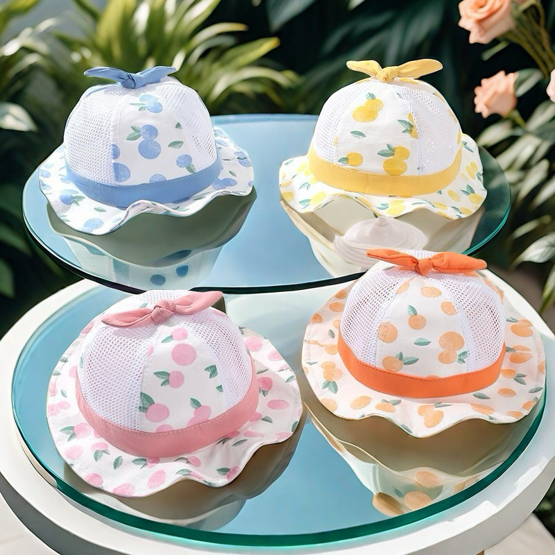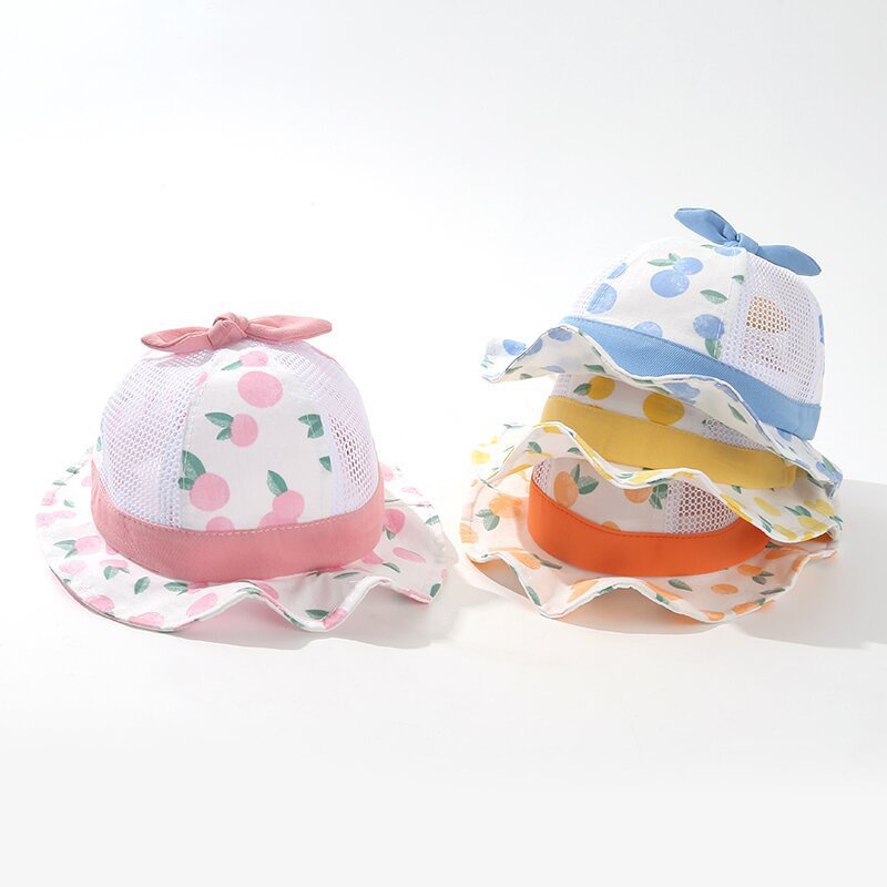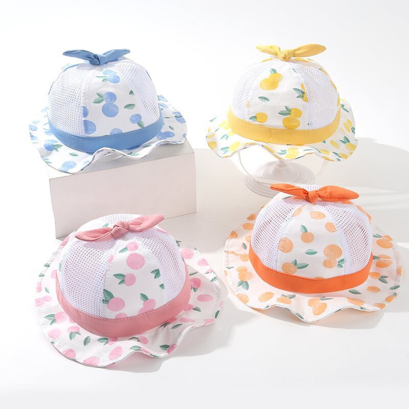 봄 새로운 얇은 아기 메쉬 모자 아기 모자 만화 분지 모자 귀여운 태양 보호 그늘 슈퍼 귀여운 여름스토어 가기