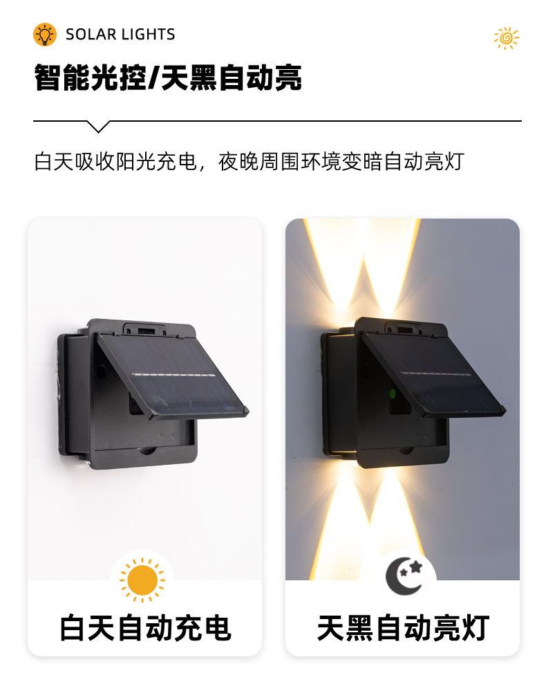 새로운 태양 야외 벽 램프 위아래로 빛나는 LED 방수 안뜰 빌라 장식 홈 벽 램프 국경 간스토어 가기