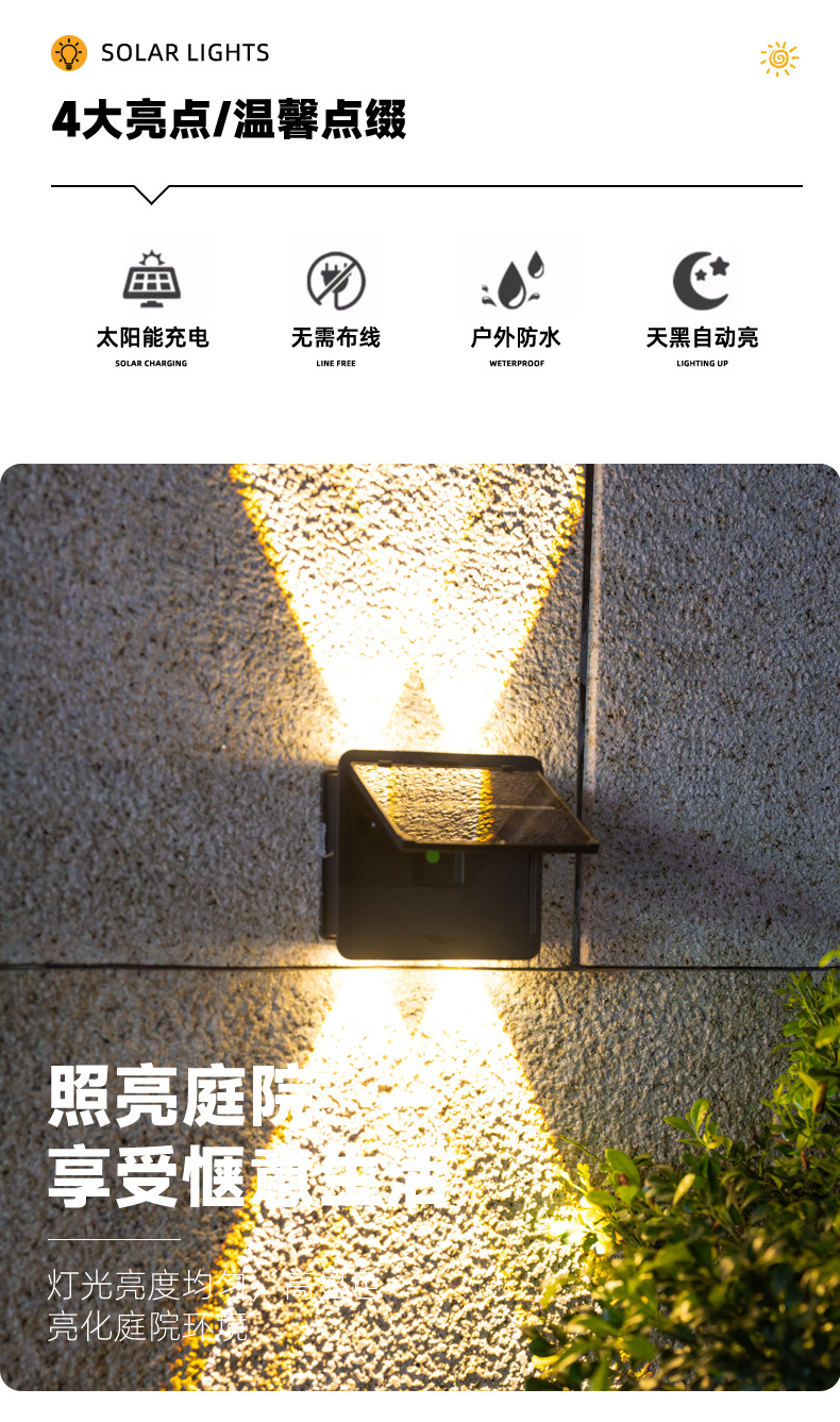 새로운 태양 야외 벽 램프 위아래로 빛나는 LED 방수 안뜰 빌라 장식 홈 벽 램프 국경 간
