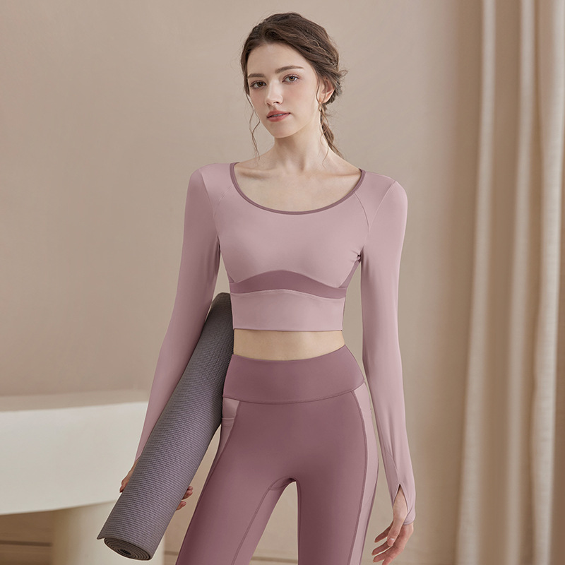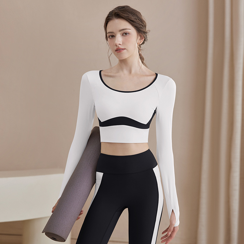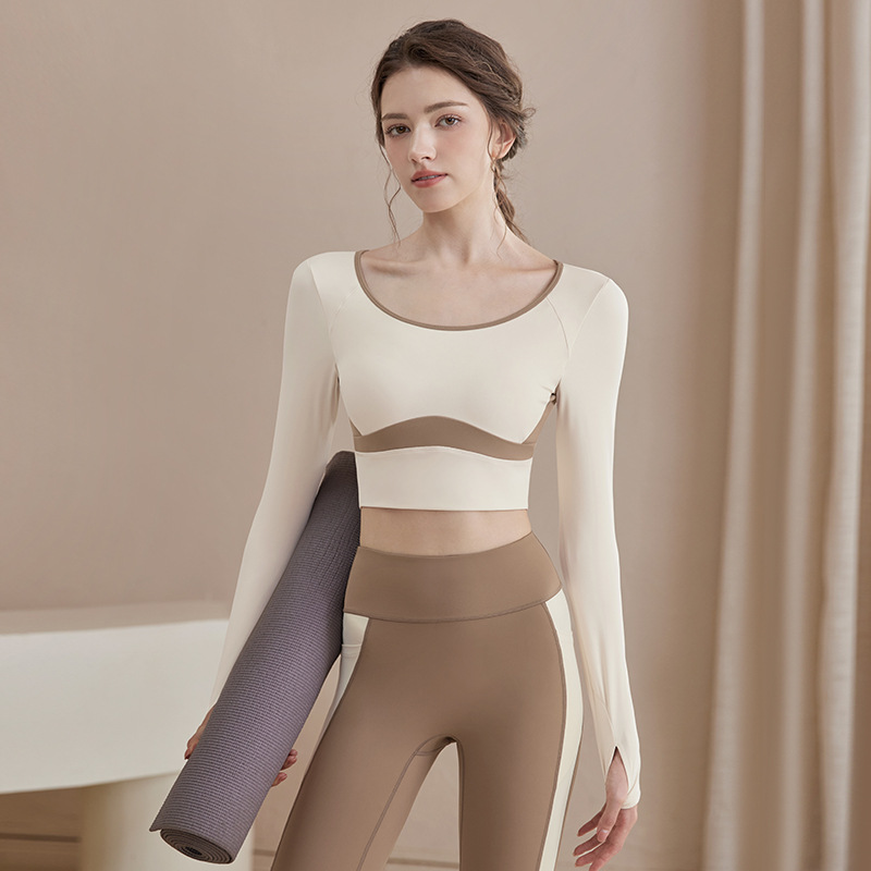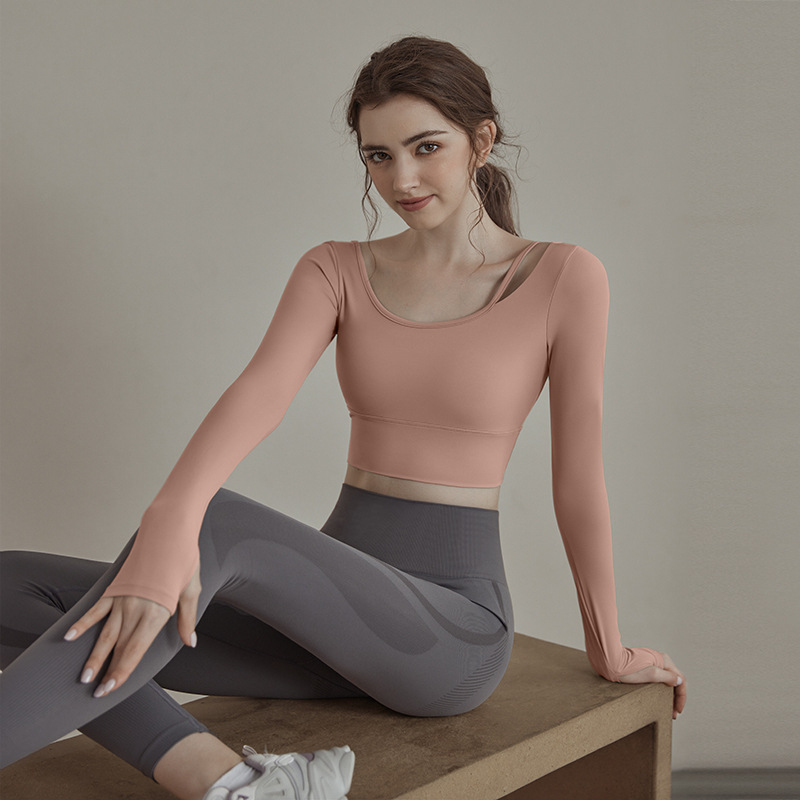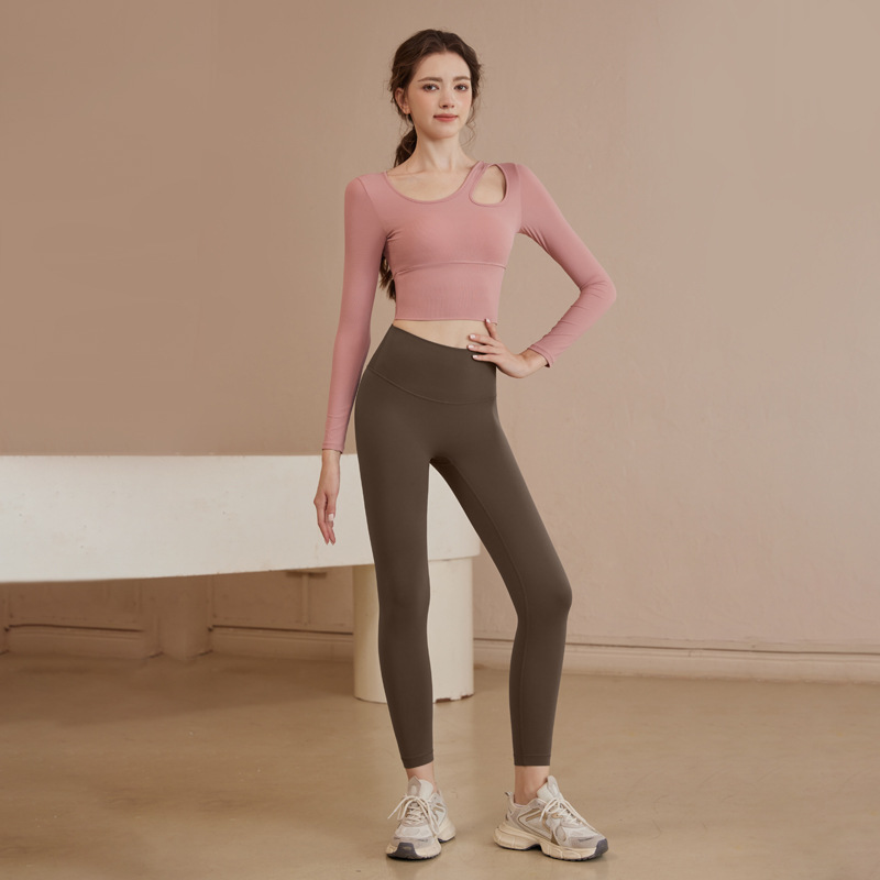 여성을위한 요가 옷 2025 가을, 겨울 요가 긴팔 가슴 패드 피트니스 필라테스 긴팔 중공 슬리밍 탑 여성용