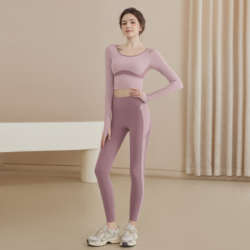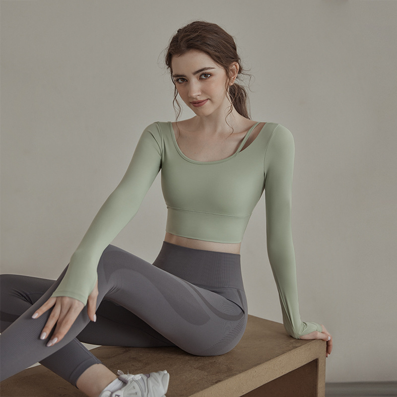 여성을위한 요가 옷 2025 가을, 겨울 요가 긴팔 가슴 패드 피트니스 필라테스 긴팔 중공 슬리밍 탑 여성용스토어 가기