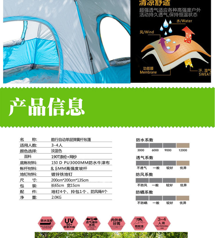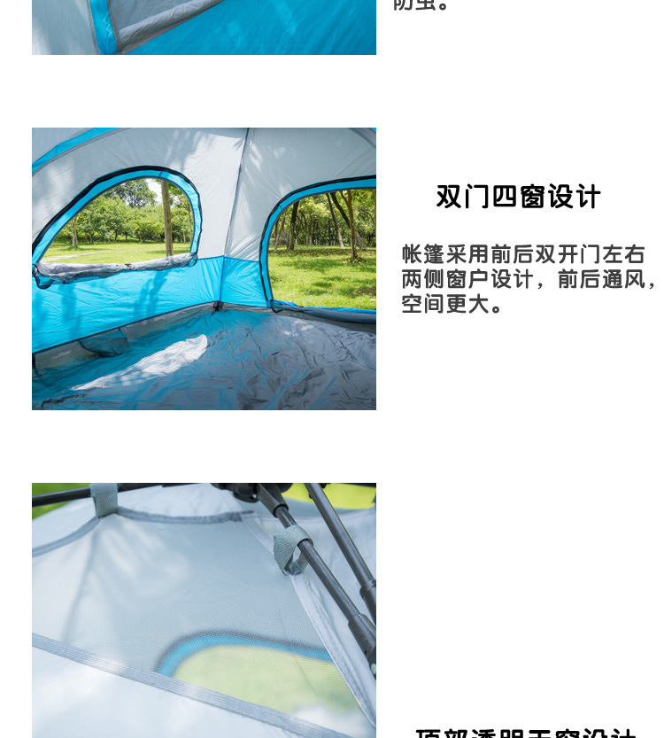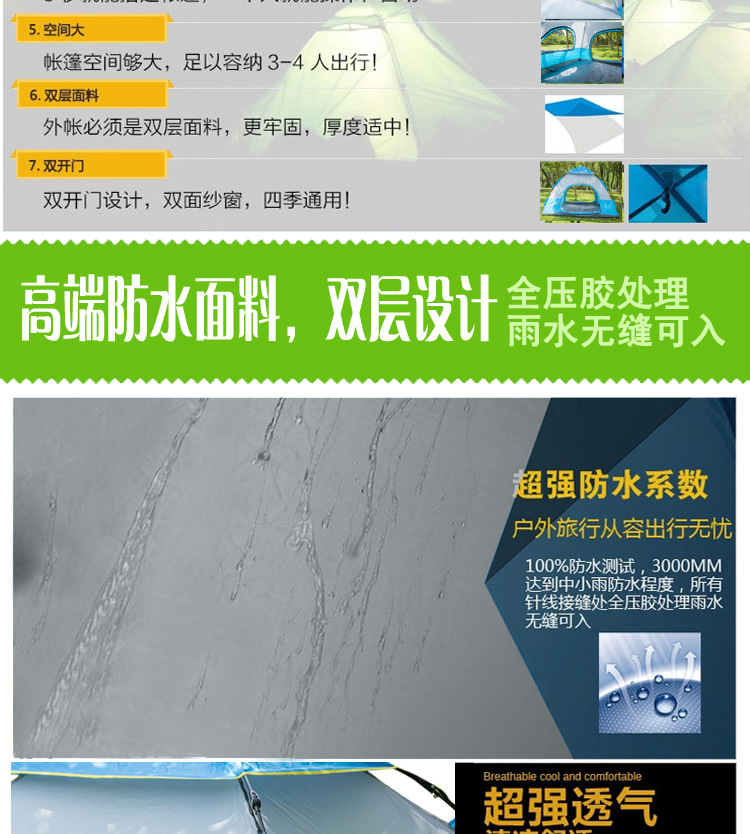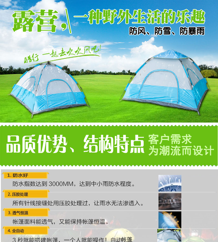 3~4인용 맞춤형 캠핑 해변 텐트, 야외 캠핑 및 낚시, 2인용 자동 투척 텐트, 2개의 문, 2개의 창문, 단층 텐트스토어 가기
