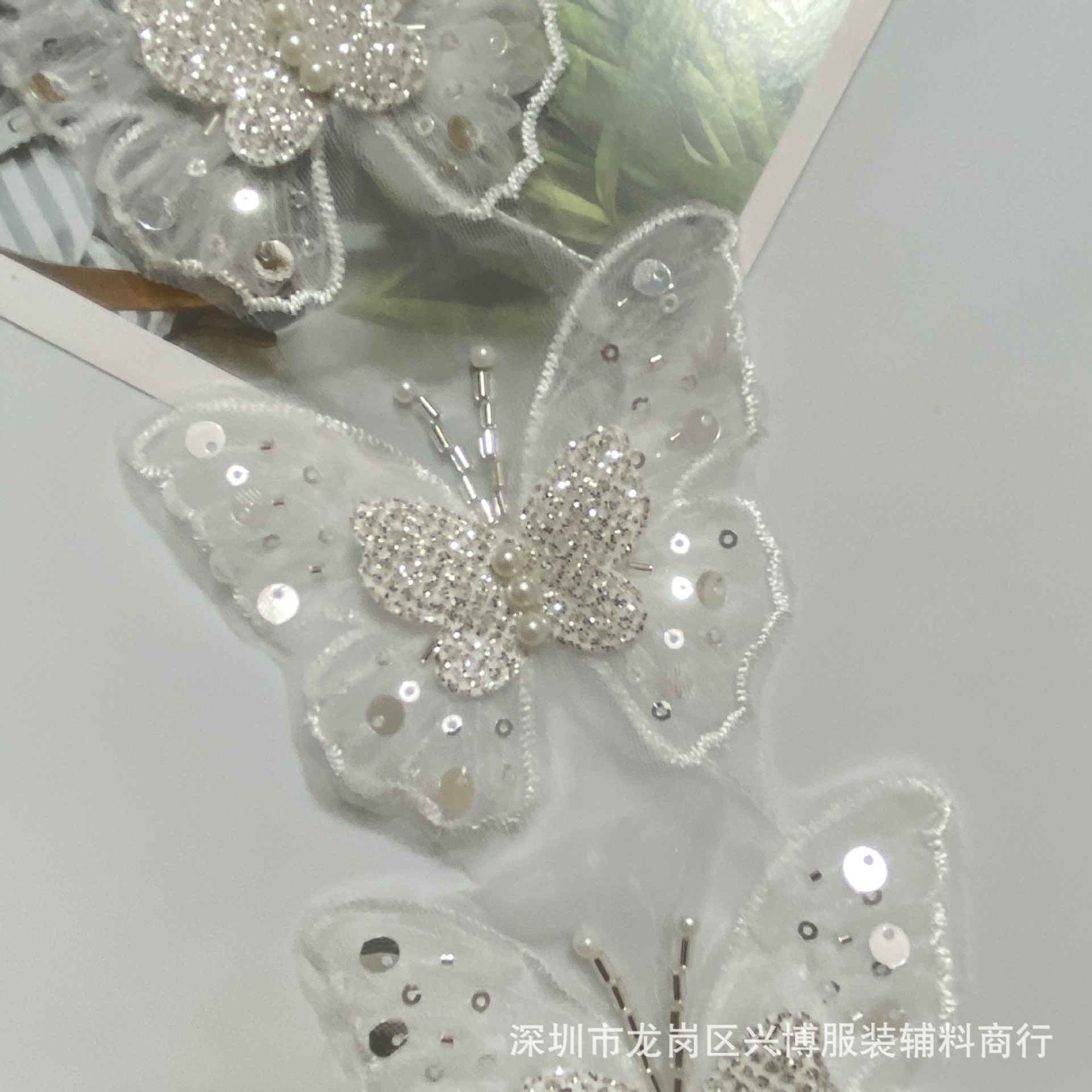 새로운 메쉬 스팽글 나비 비드 튜브 자수 레이스 천 스티커 수제 diy 헤어 액세서리 ins 여성 의류 아동 의류 액세서리스토어 가기
