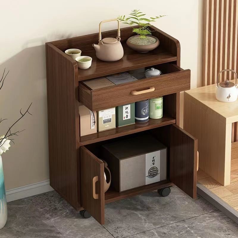 • (다크월넛 컬러) 도어 2개, 서랍 1개 [바퀴 없음 모델]]