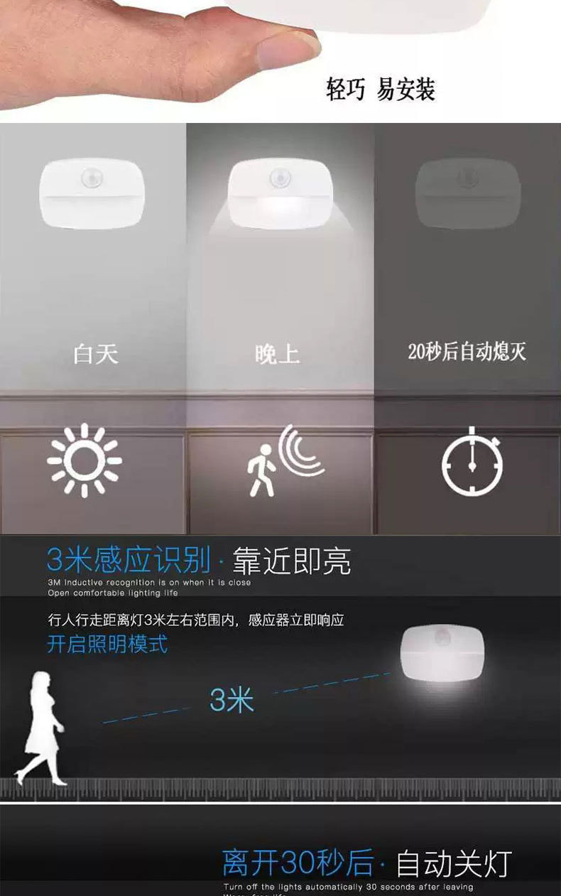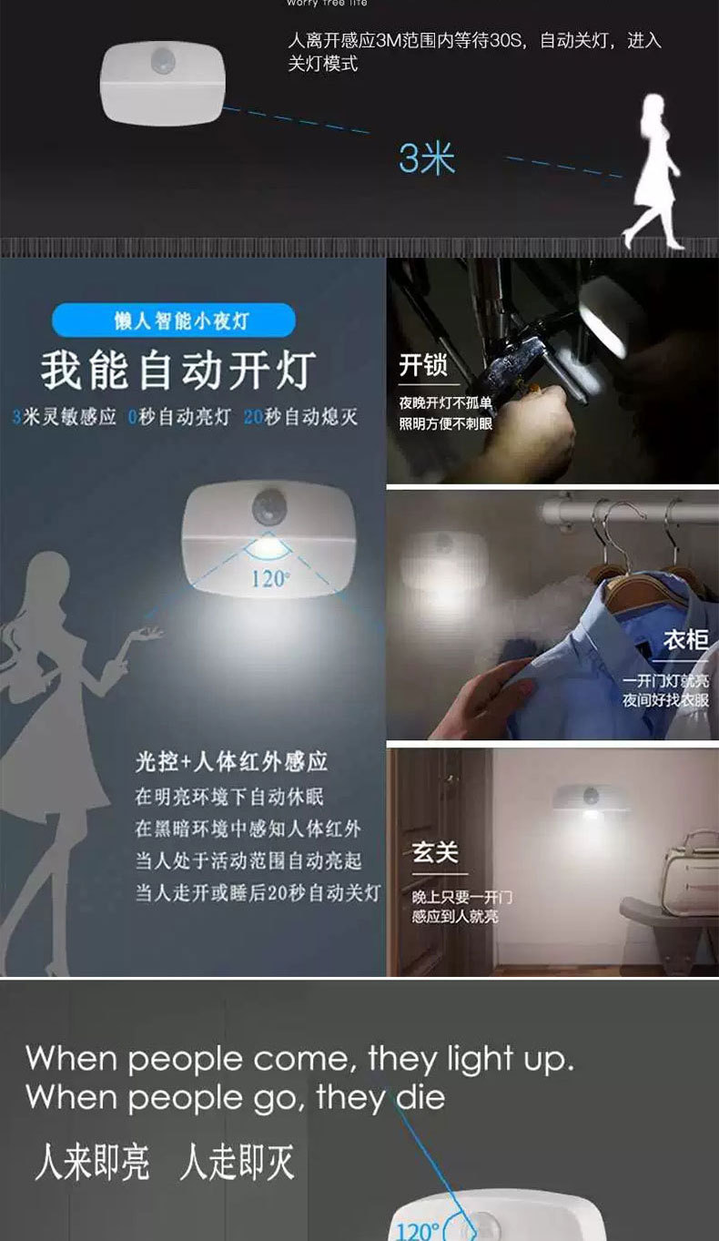 야간 조명 LED 적외선 센서 계단 조명 옷장 캐비닛 스마트 인체 센서 PIR 야간 조명 서랍 책장 조명스토어 가기