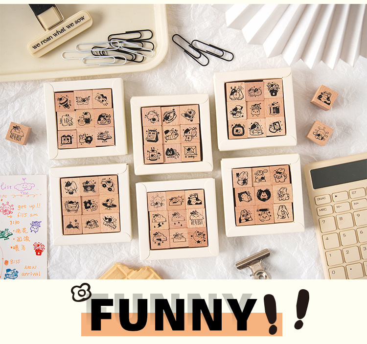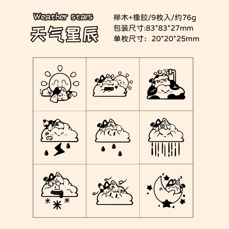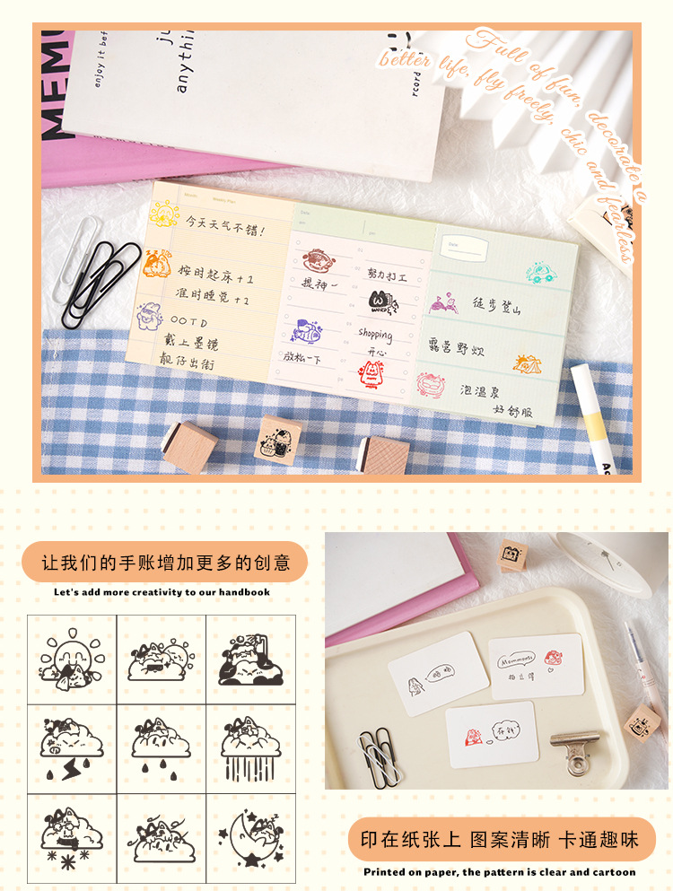 시간 기록 나무 스탬프 세트 diy 핸드북 일기 인쇄 크로스 보더 만화 동물 날씨 핸드북 스탬프스토어 가기
