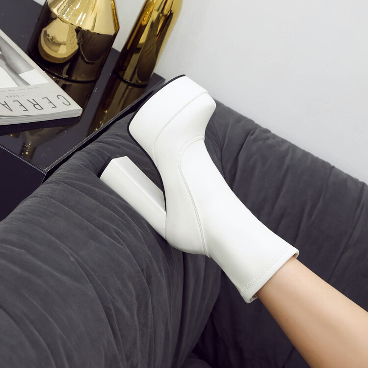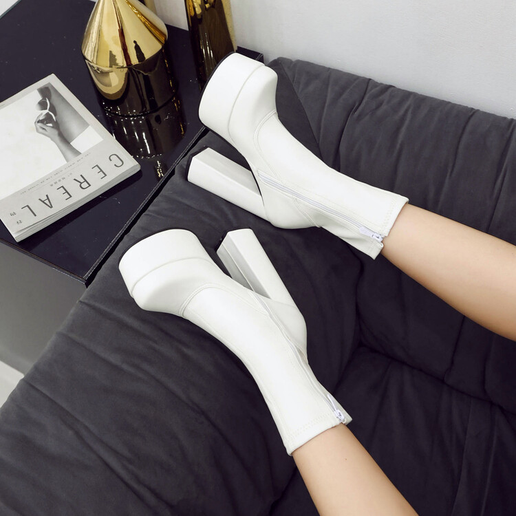 한국식 방수 플랫폼 스퀘어 토 하이힐 부츠 23 가을 겨울 신상 미끄럼 방지 두꺼운 굽 짧은 부츠 여성용 마틴 부츠