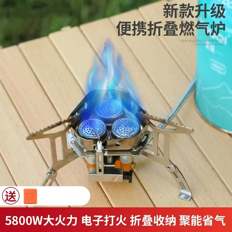 야외 휴대용 3구 스토브, 피크닉, 등산, 방풍 스토브, 캠핑 장비, 강력한 화재 가스 스토브, 자율주행 자동차 스토브