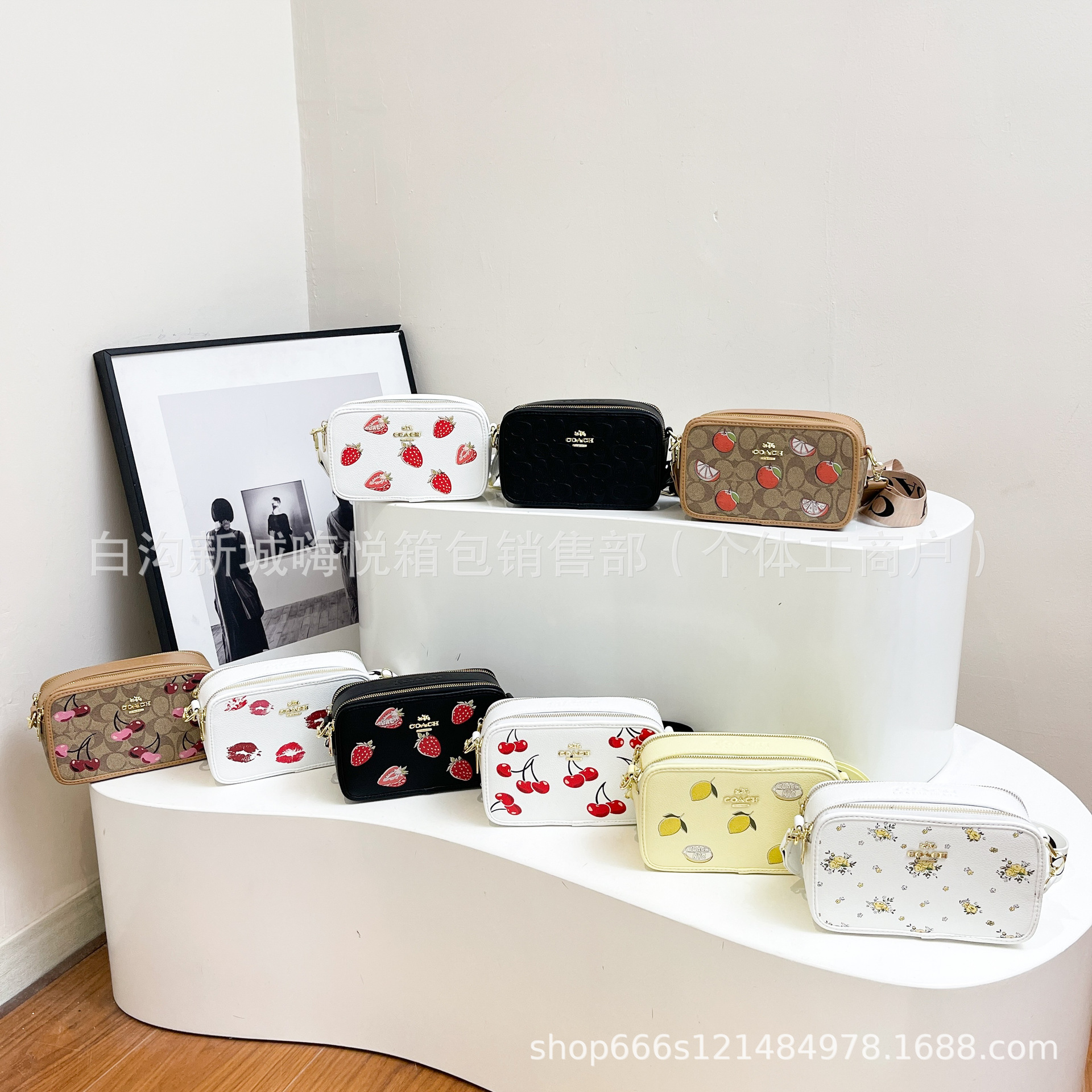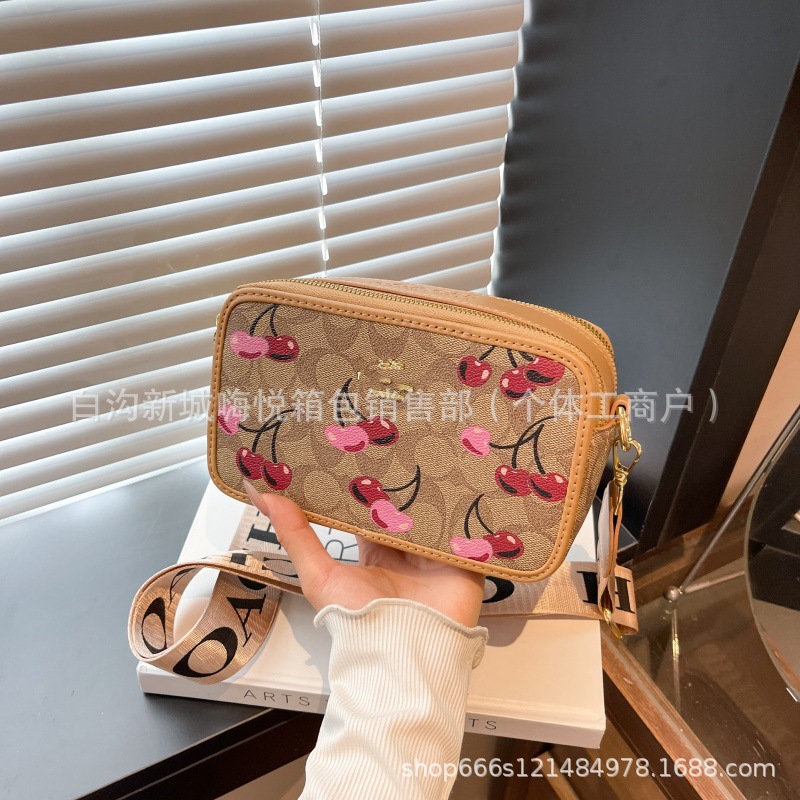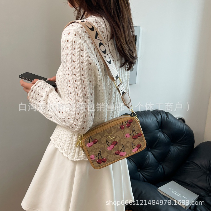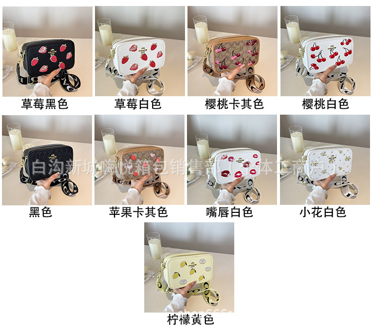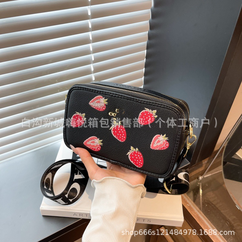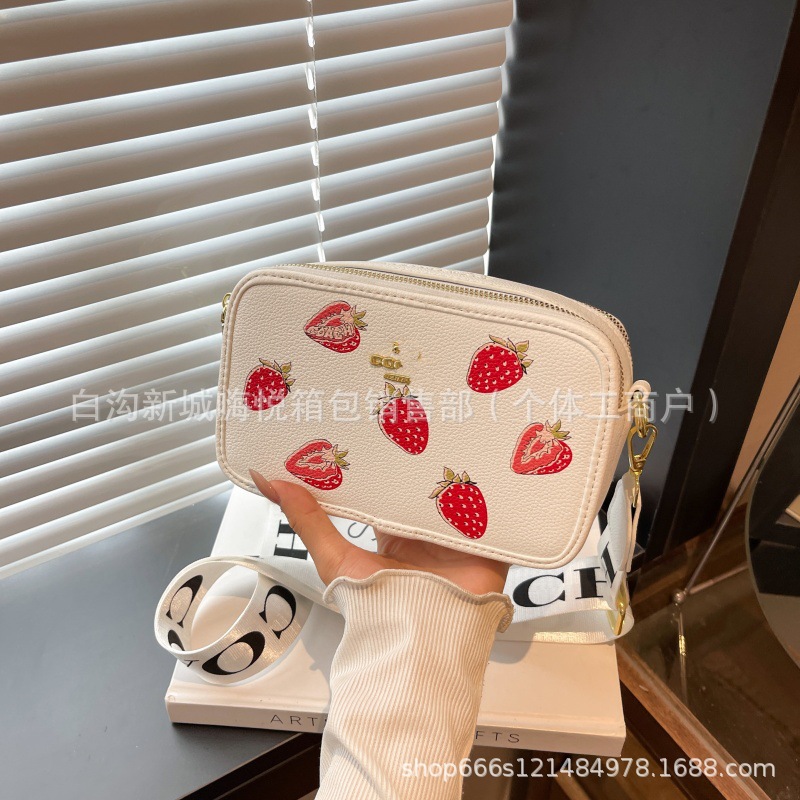 여성용 가방 2025 새로운 딸기 프린트 겨드랑이 가방 핸드백 카메라 가방 손목 가방 싱글 숄더 크로스 바디 스몰 스퀘어 백스토어 가기