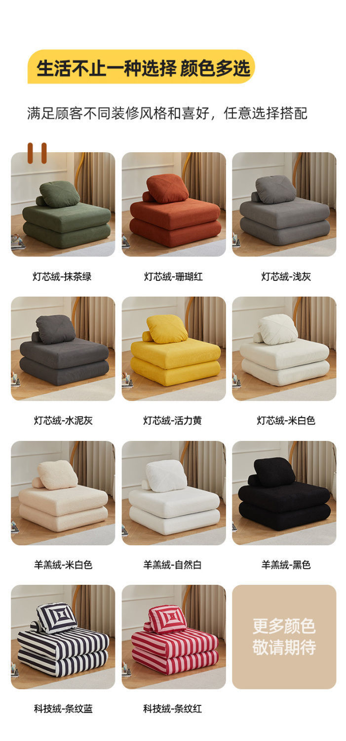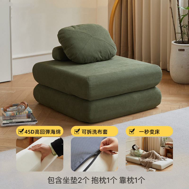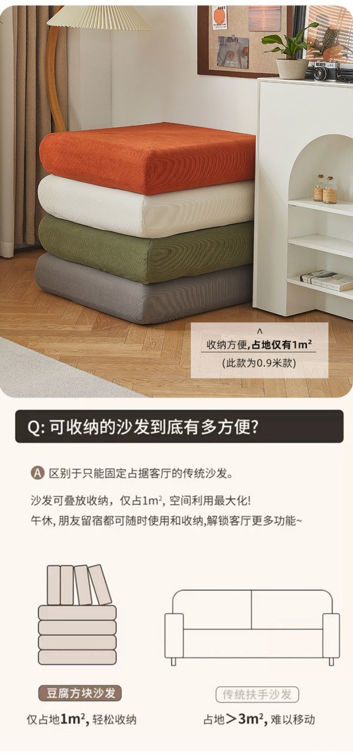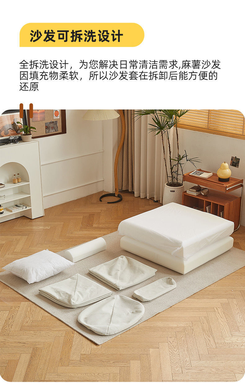 게으른 소파 소파 베드 두부 블록 거실 분리형 및 세탁 가능한 패브릭 소파 모찌 작은 아파트 싱글 침실 다다미스토어 가기