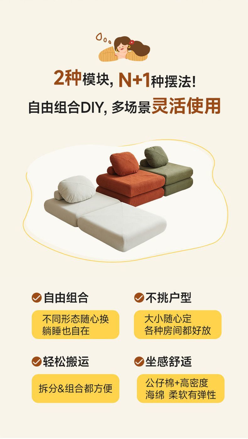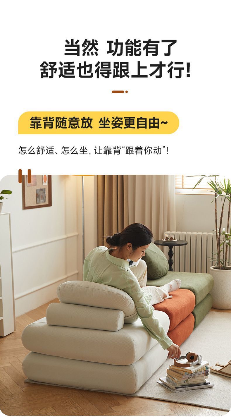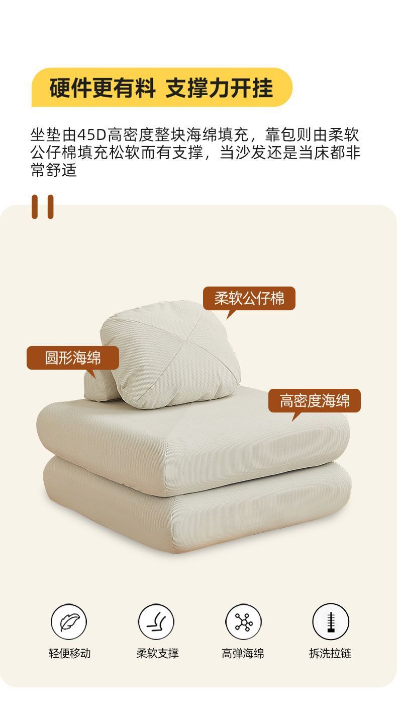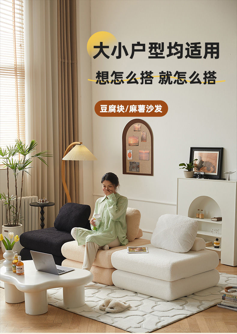 게으른 소파 소파 베드 두부 블록 거실 분리형 및 세탁 가능한 패브릭 소파 모찌 작은 아파트 싱글 침실 다다미스토어 가기
