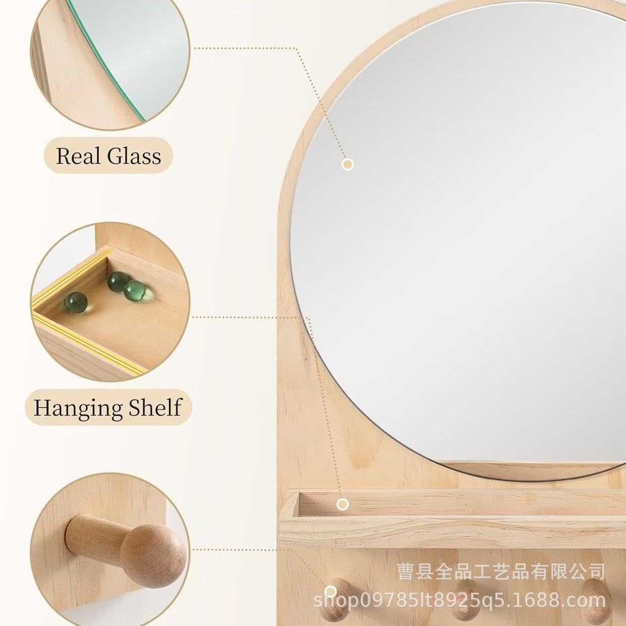 맞춤형 벽걸이형 드레싱 테이블 거울 선반 후크가 있는 나무 거실 침실 거울 드레싱 코트 랙스토어 가기