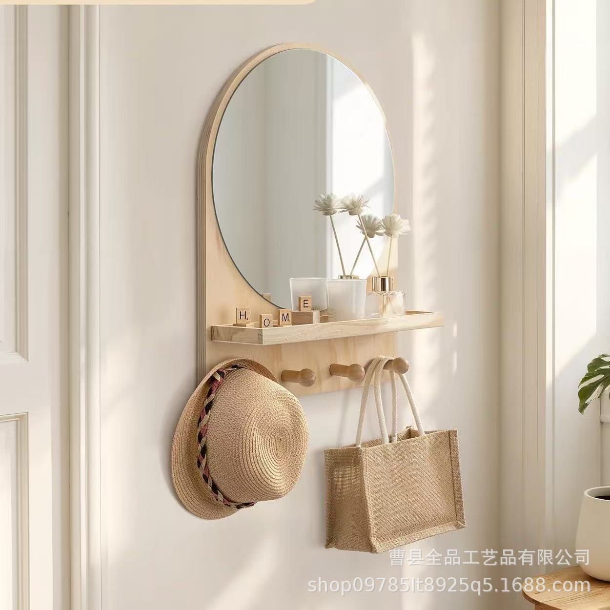 맞춤형 벽걸이형 드레싱 테이블 거울 선반 후크가 있는 나무 거실 침실 거울 드레싱 코트 랙