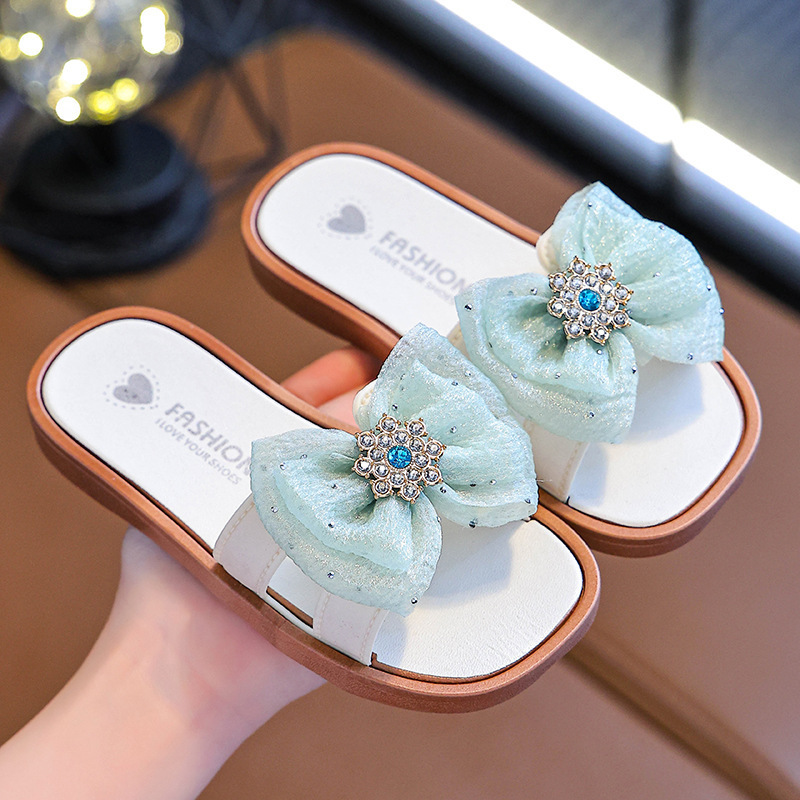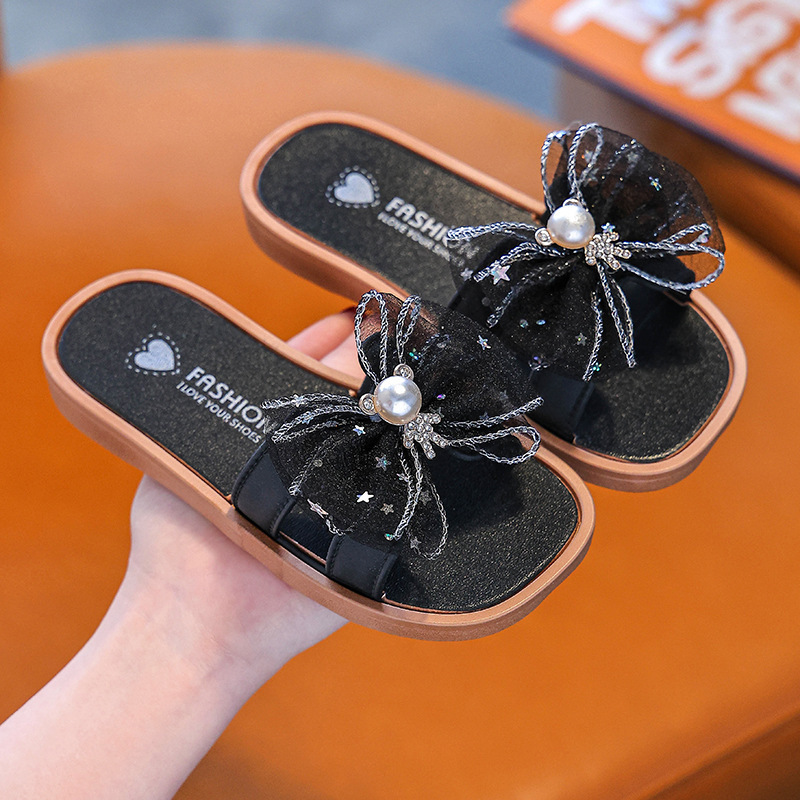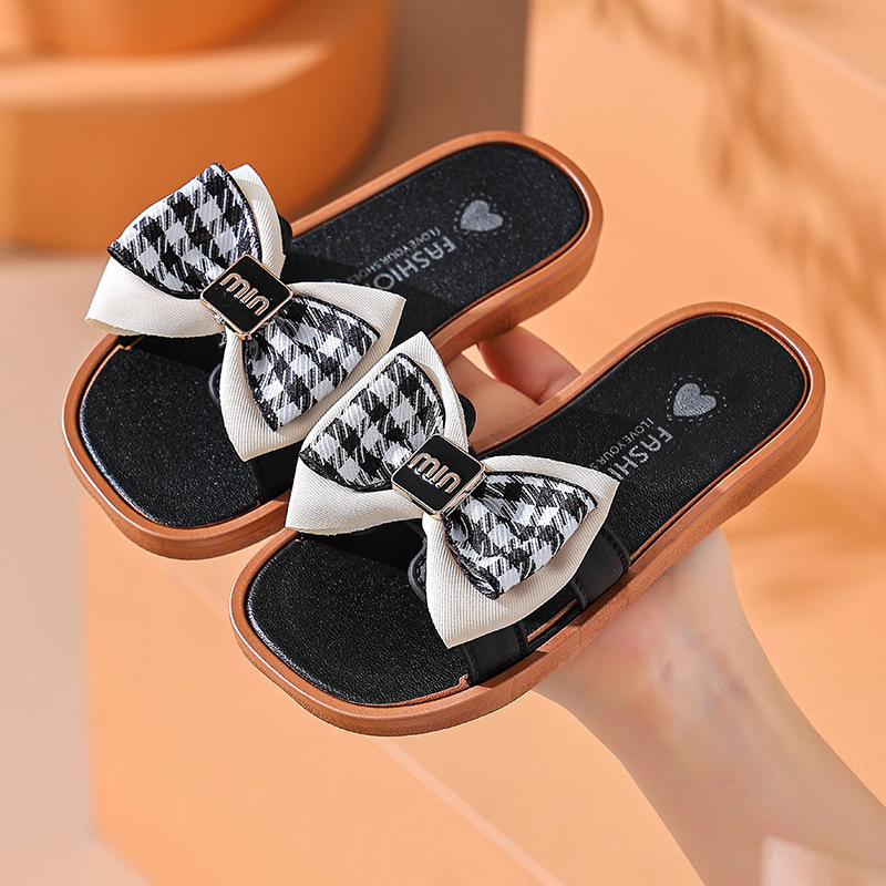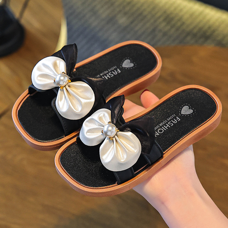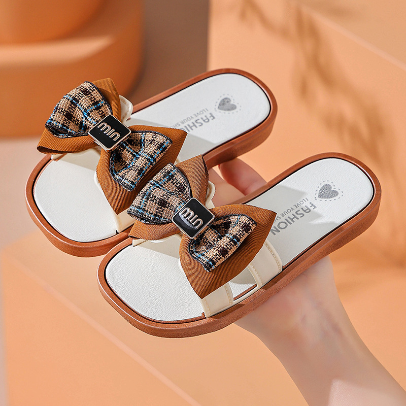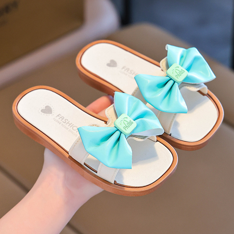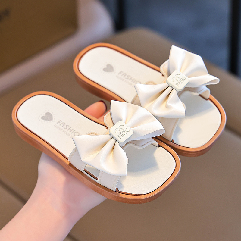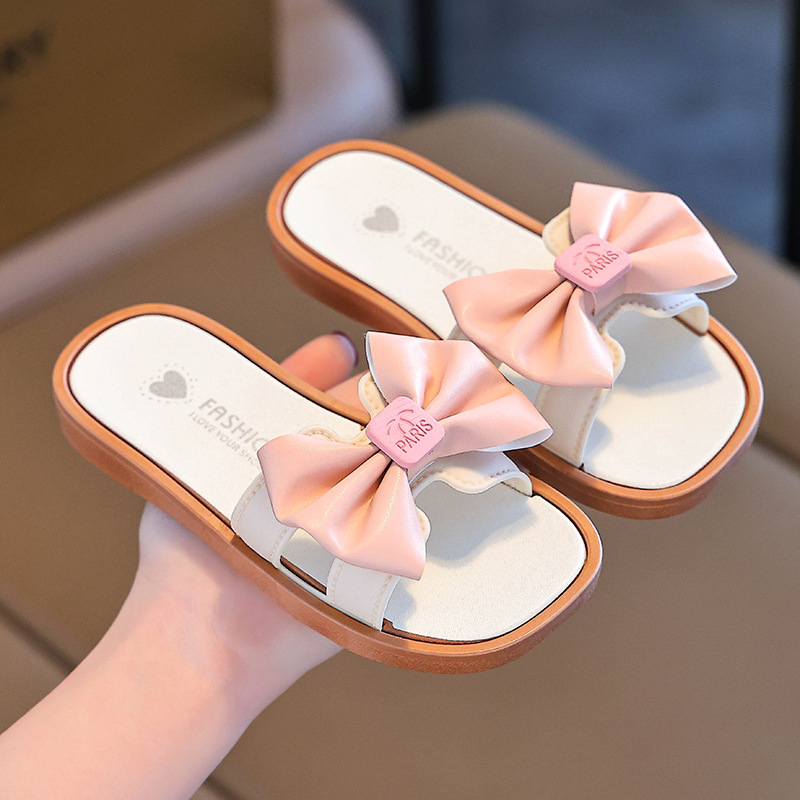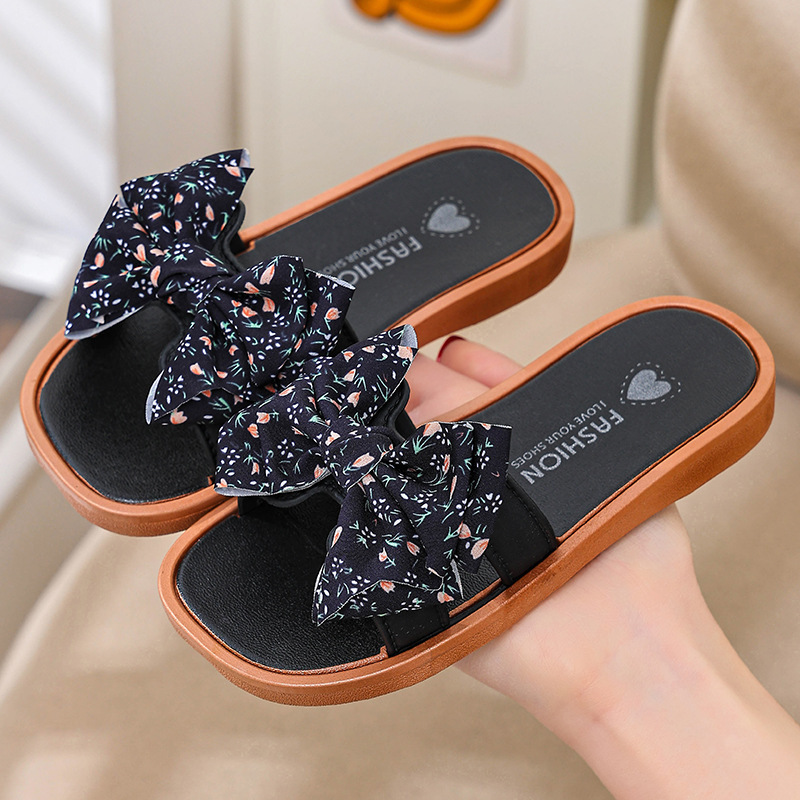 여성용 어린이 슬리퍼 2025 새로운 여름 스타일 다용도 보우 해변 슬리퍼 겉옷 미끄럼 방지 비치 샌들