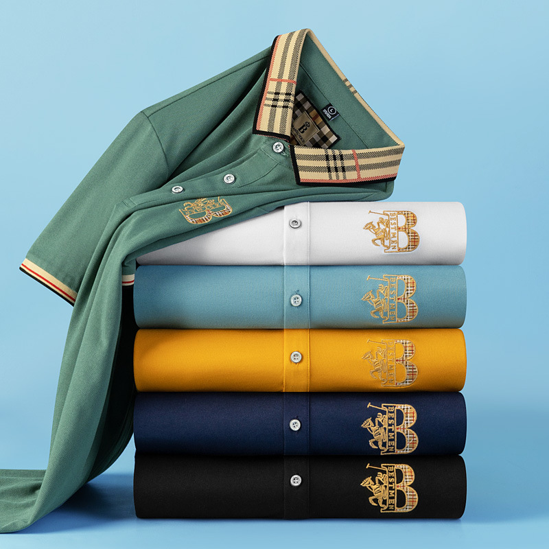 남성 브랜드 반팔 티셔츠 남성 자수 여름 솔리드 컬러 캐주얼 패션 비즈니스 남성 폴로 셔츠 하이 엔드스토어 가기