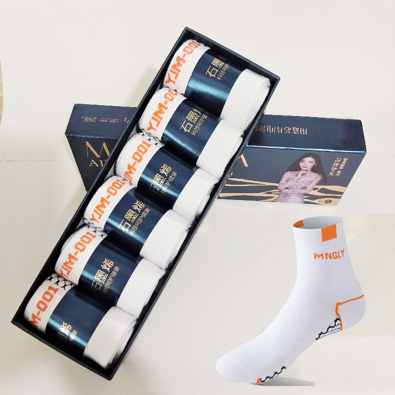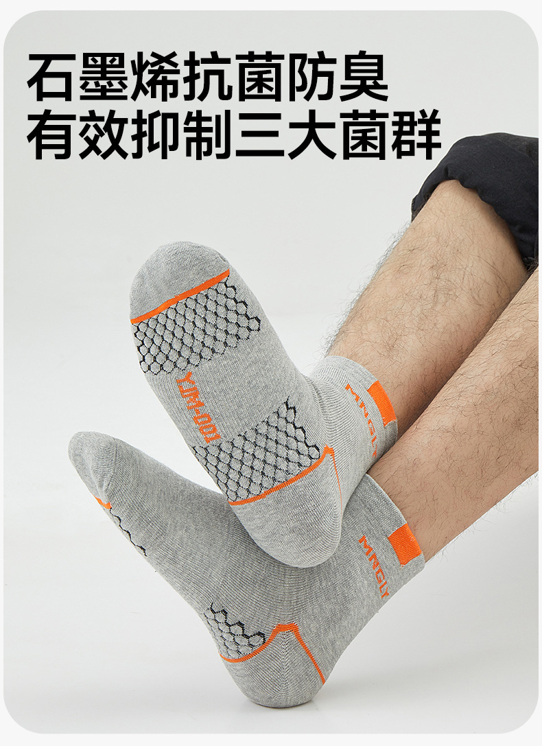 그래핀 10A 등급 양말 남성용 여름 중간 길이 항균 및 탈취제 양말 땀 흡수 및 통기성 긴 길이 순면 양말 여성용 양말