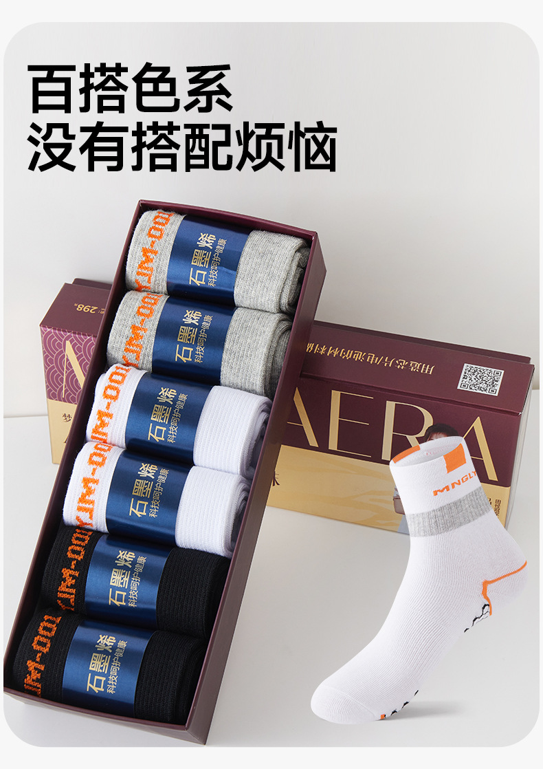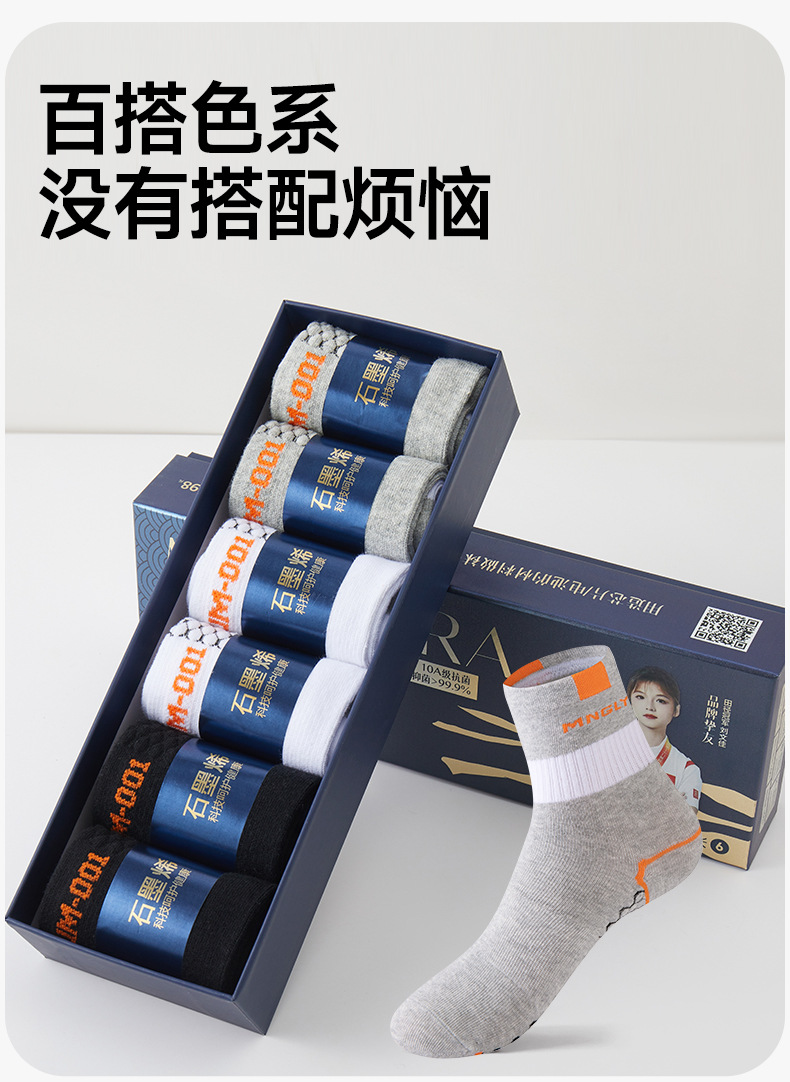 • 그래핀 [종아리 중간 양말] 혼합 컬러 6켤레 (남녀 동일 스타일)