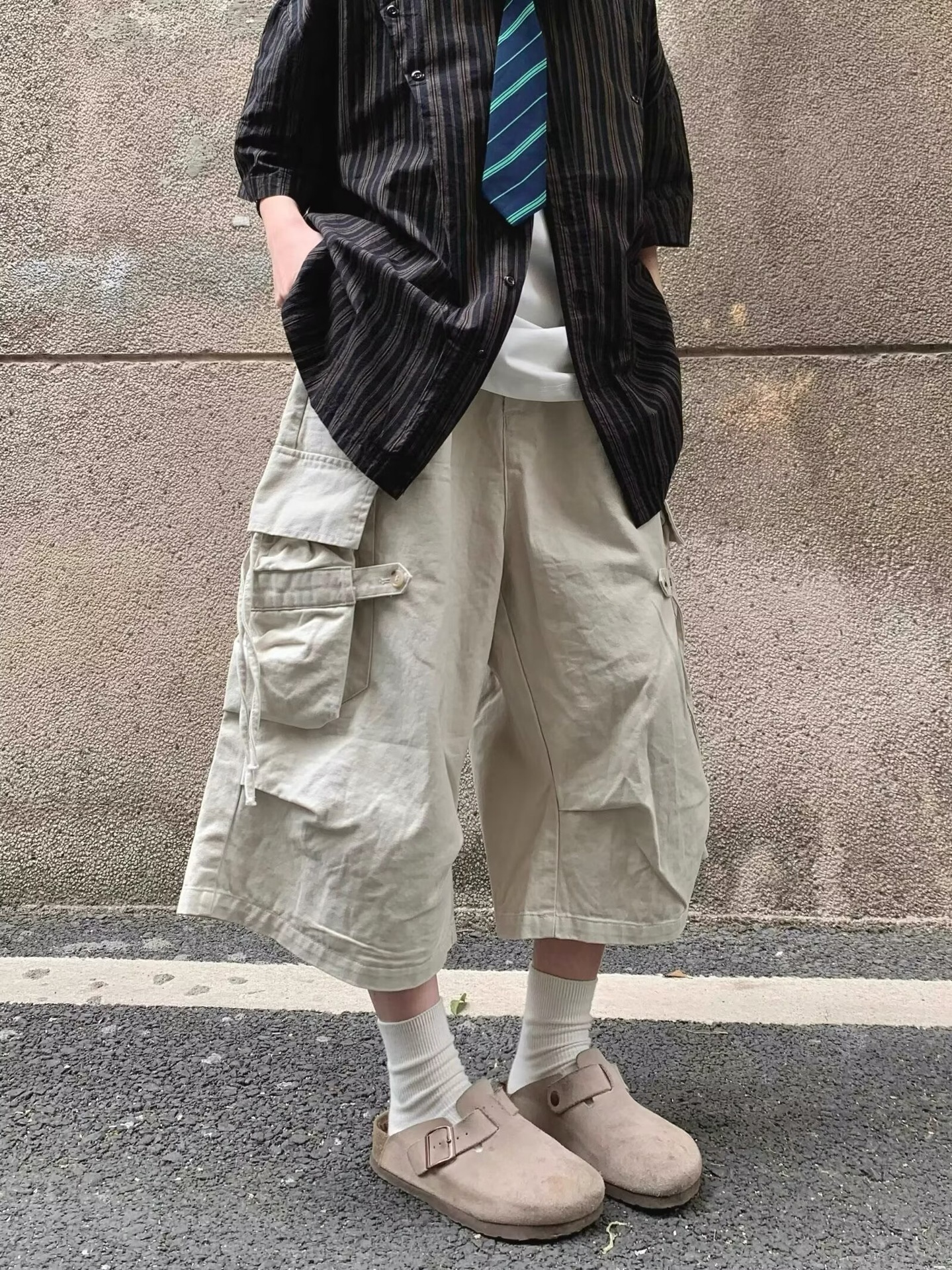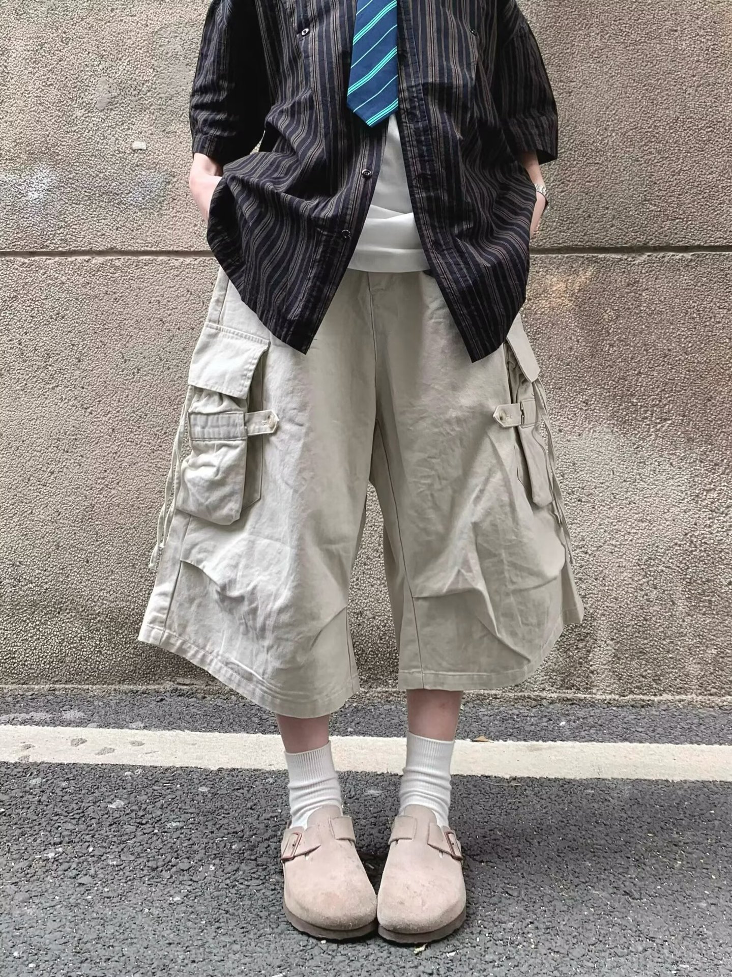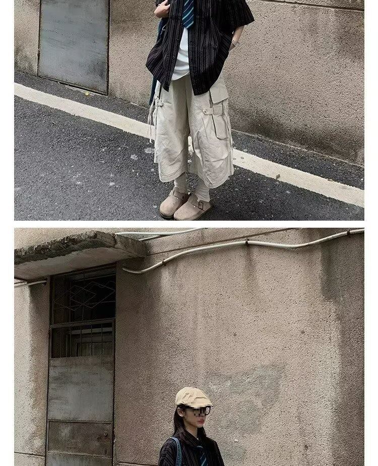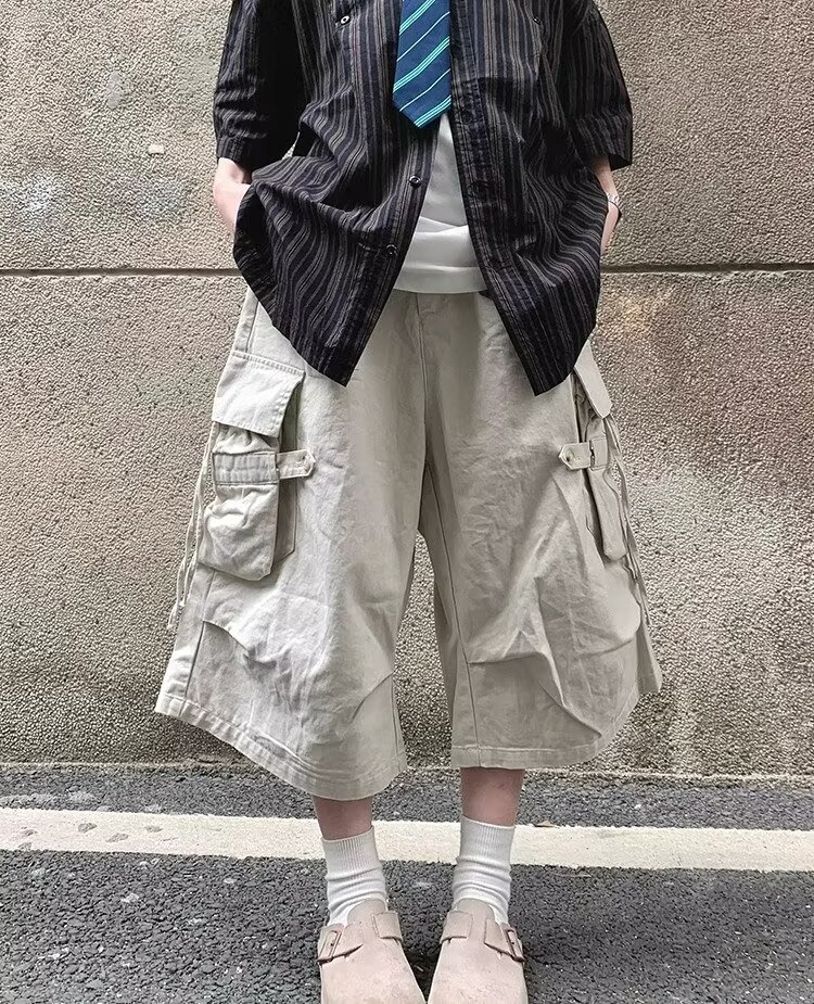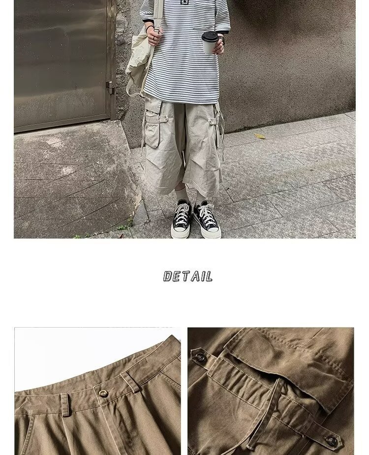 스트리트 기능성 힙합 루즈 포켓 바지 남성용 아웃도어 카고 반바지 스트레이트 스포츠 바지
