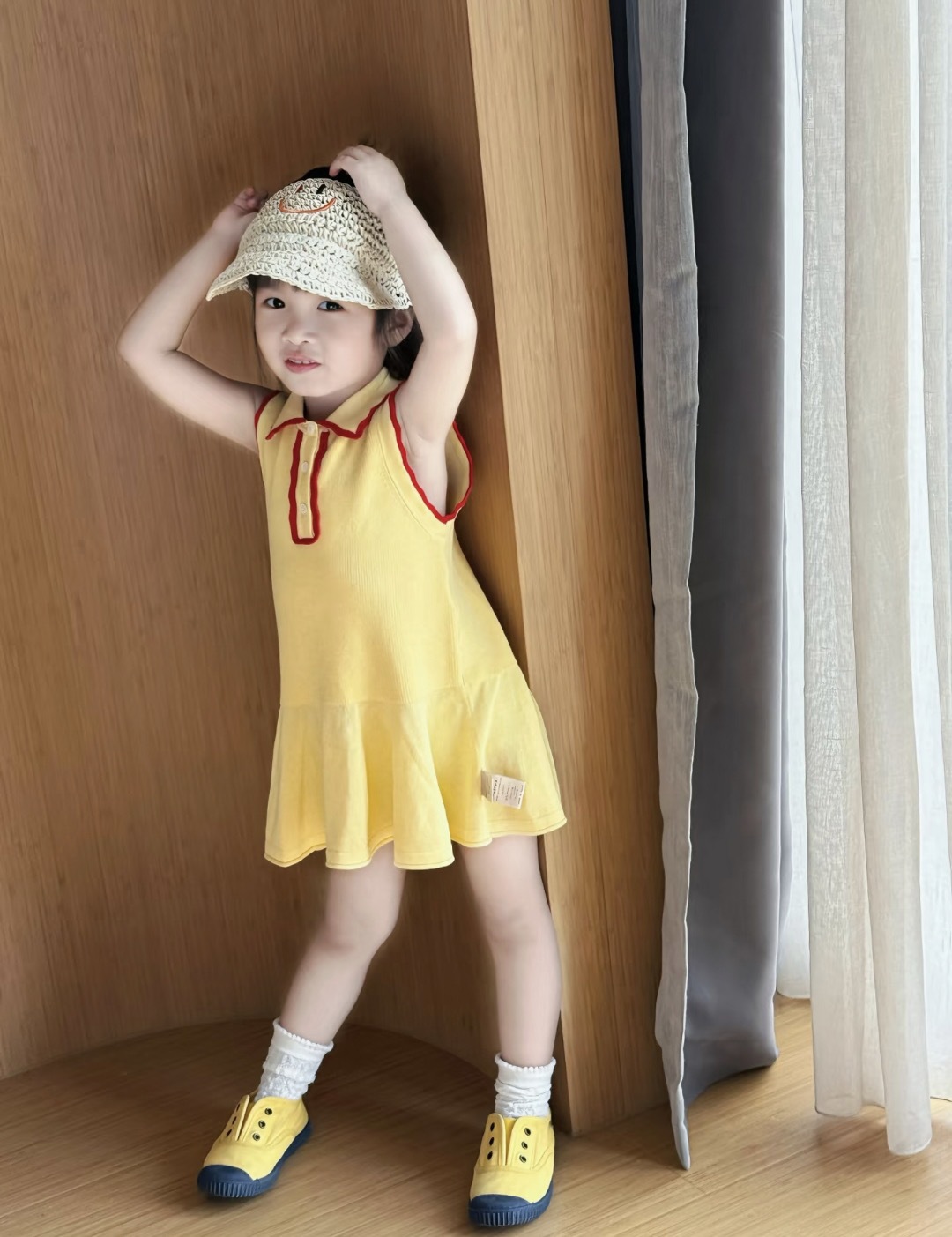 한국 아동복 2025 여름 신작 여아 드레스 아동 패션 베이비 폴로 스커트 여아 중간 길이 스커트