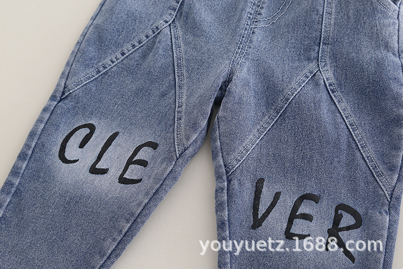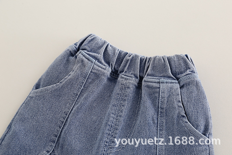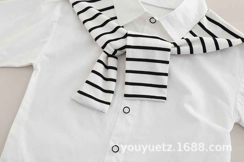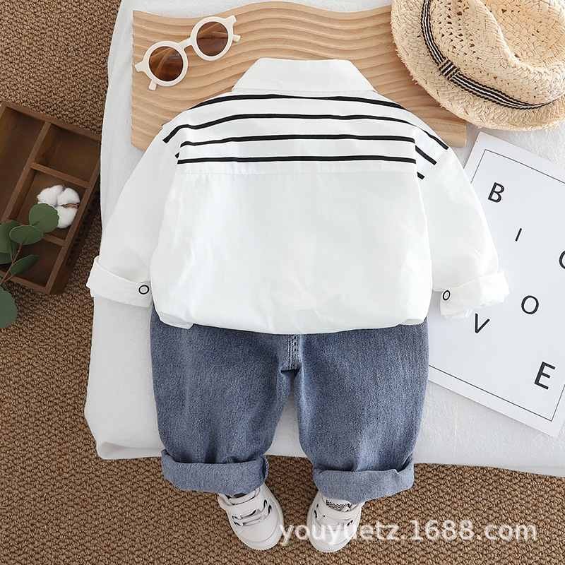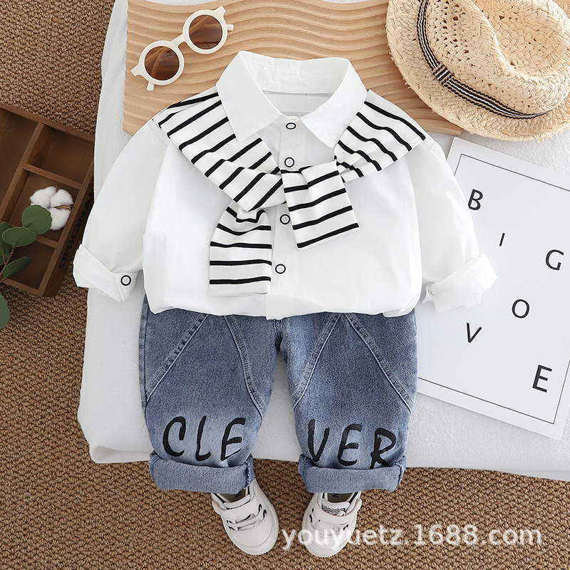 아기 봄, 가을 셔츠 정장, 세련된 어린이 스카프, 긴팔 셔츠, 데님 바지, 남아용 의류 3종 세트스토어 가기