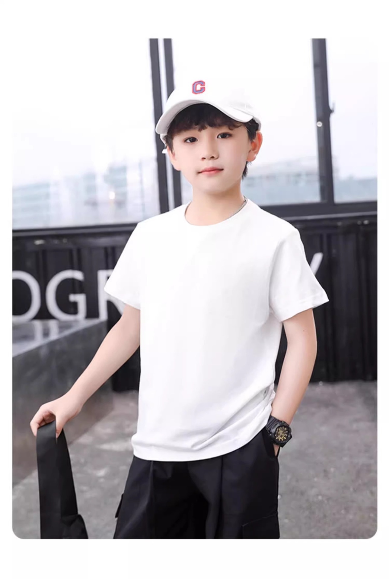 아동복 2025 새로운 여름 스타일 소년 반팔 티셔츠 중대형 어린이 대학 스타일 반팔 순면 여름상의스토어 가기