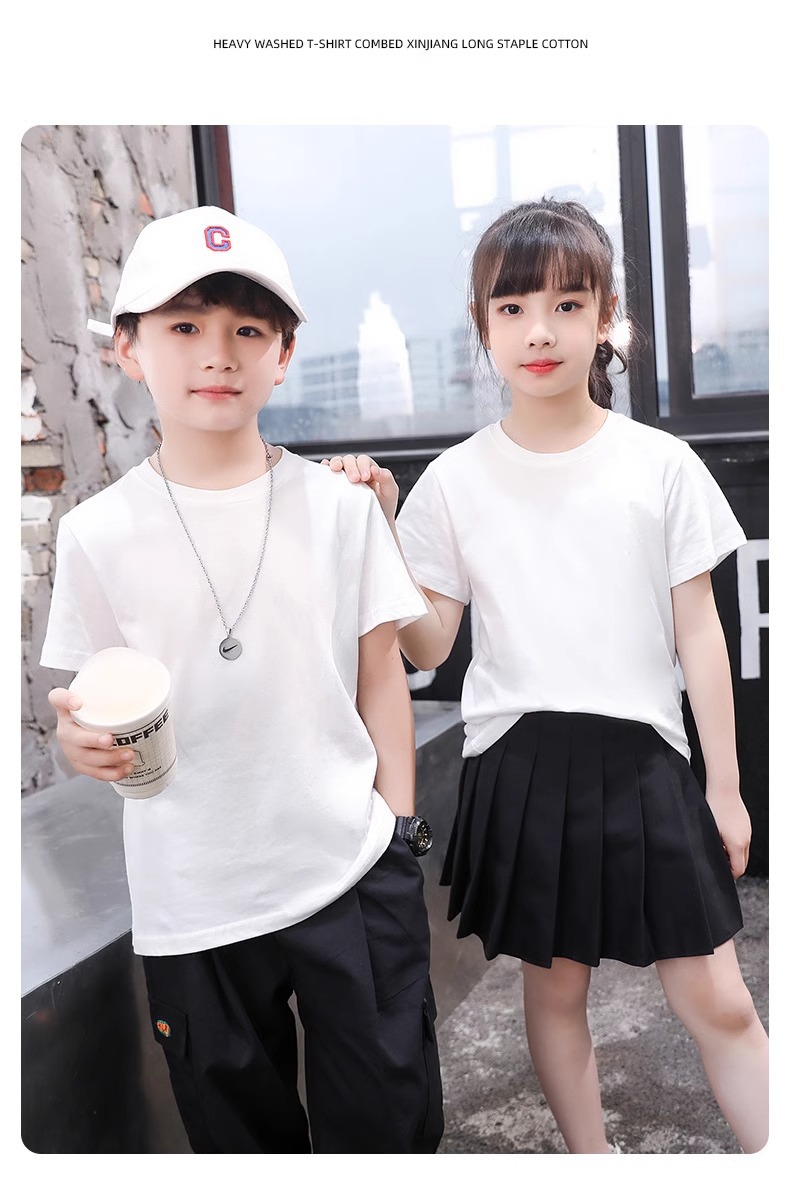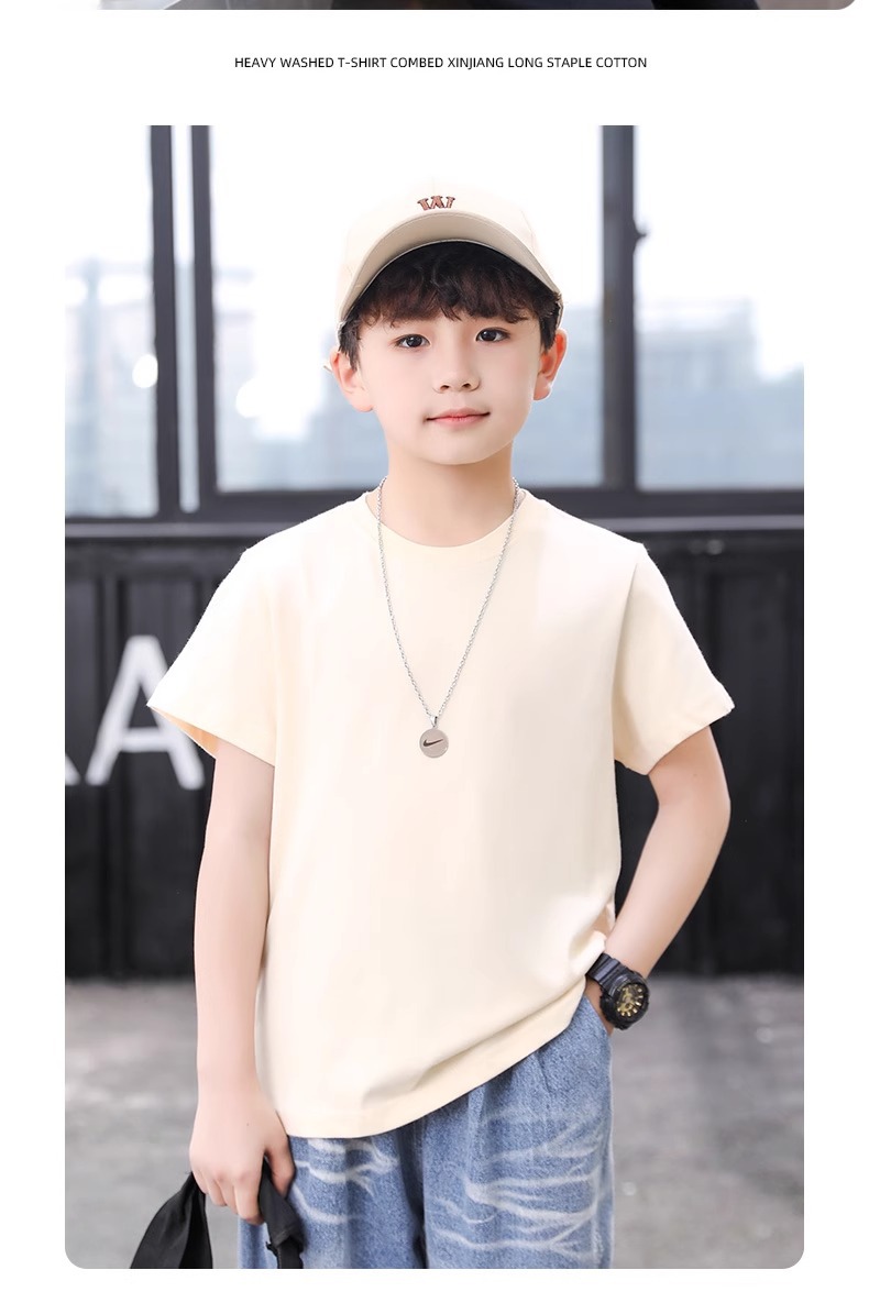 아동복 2025 새로운 여름 스타일 소년 반팔 티셔츠 중대형 어린이 대학 스타일 반팔 순면 여름상의