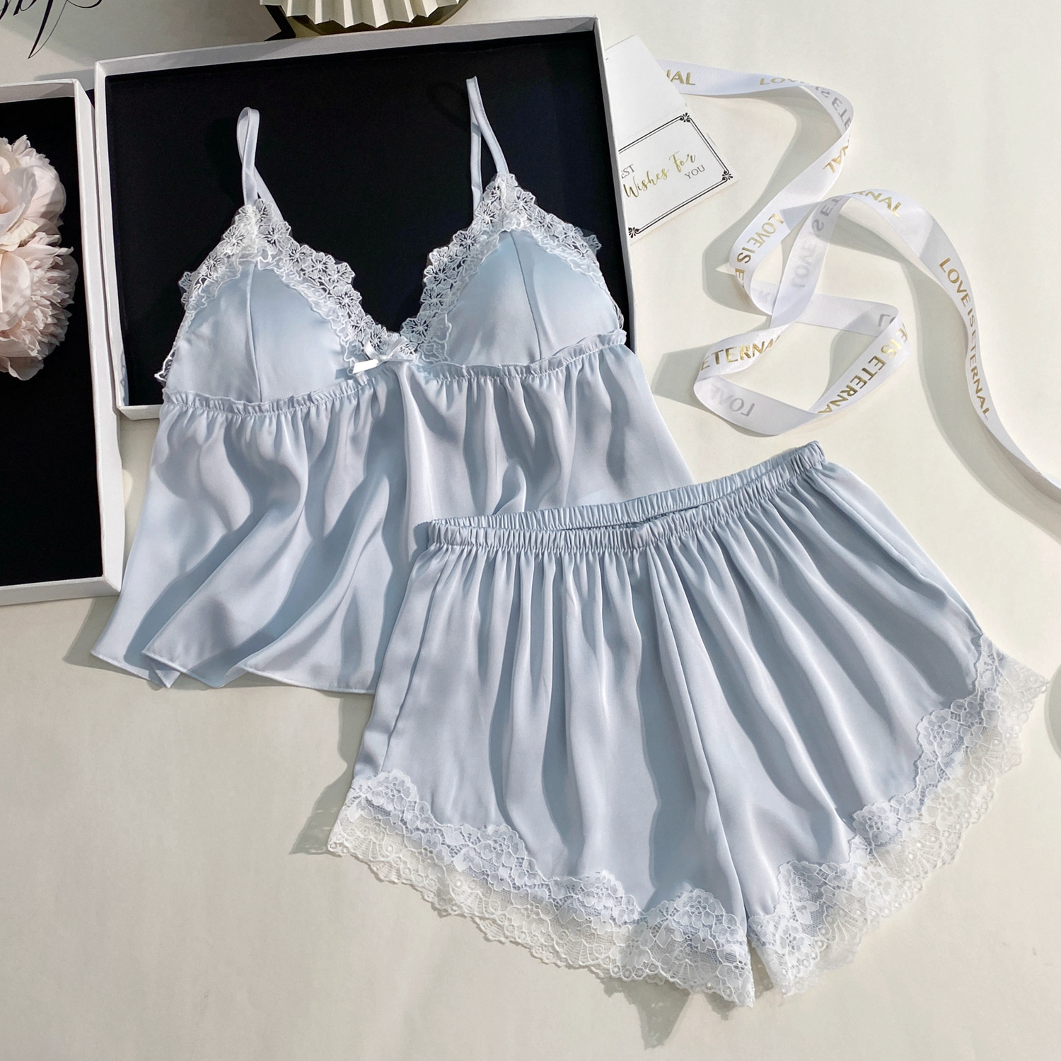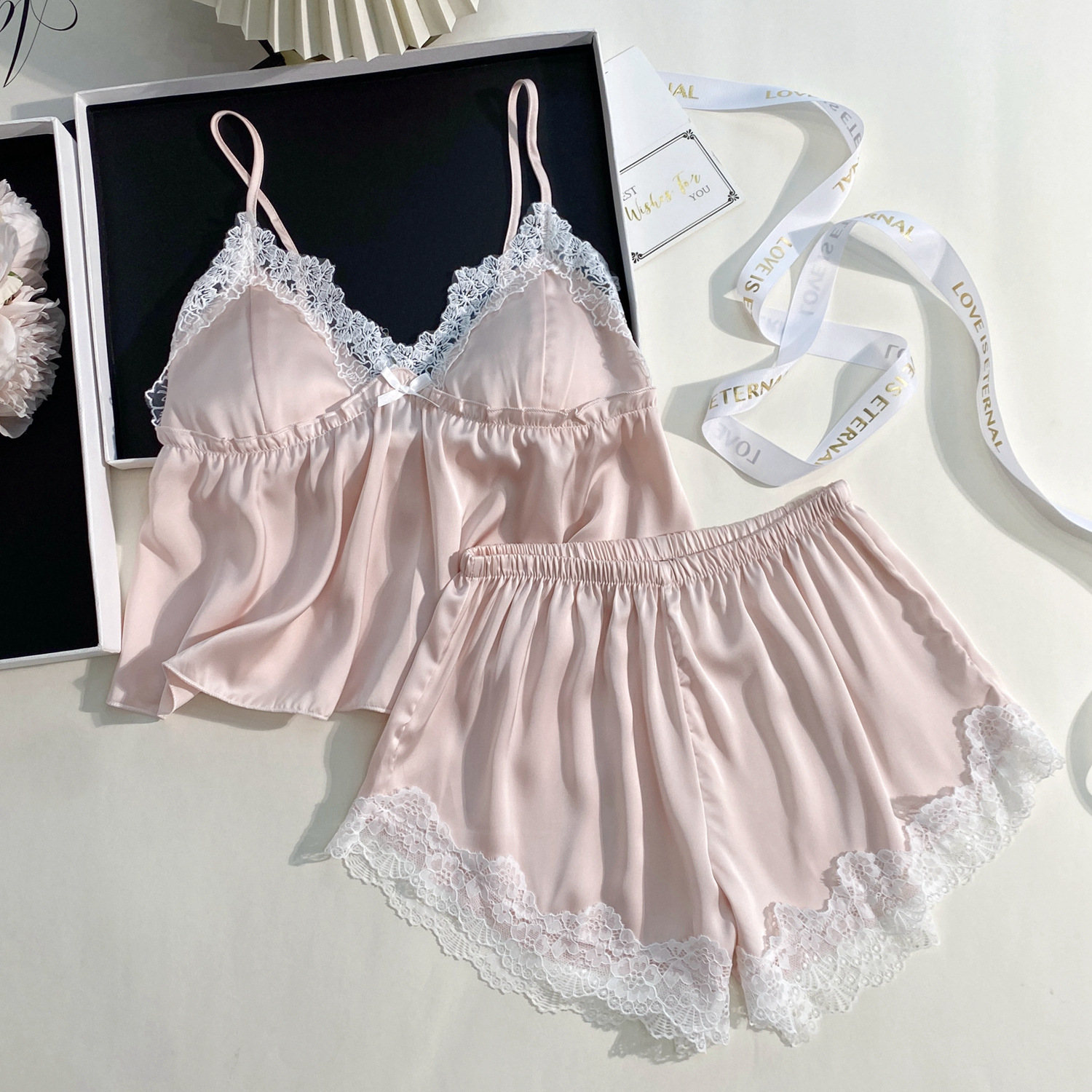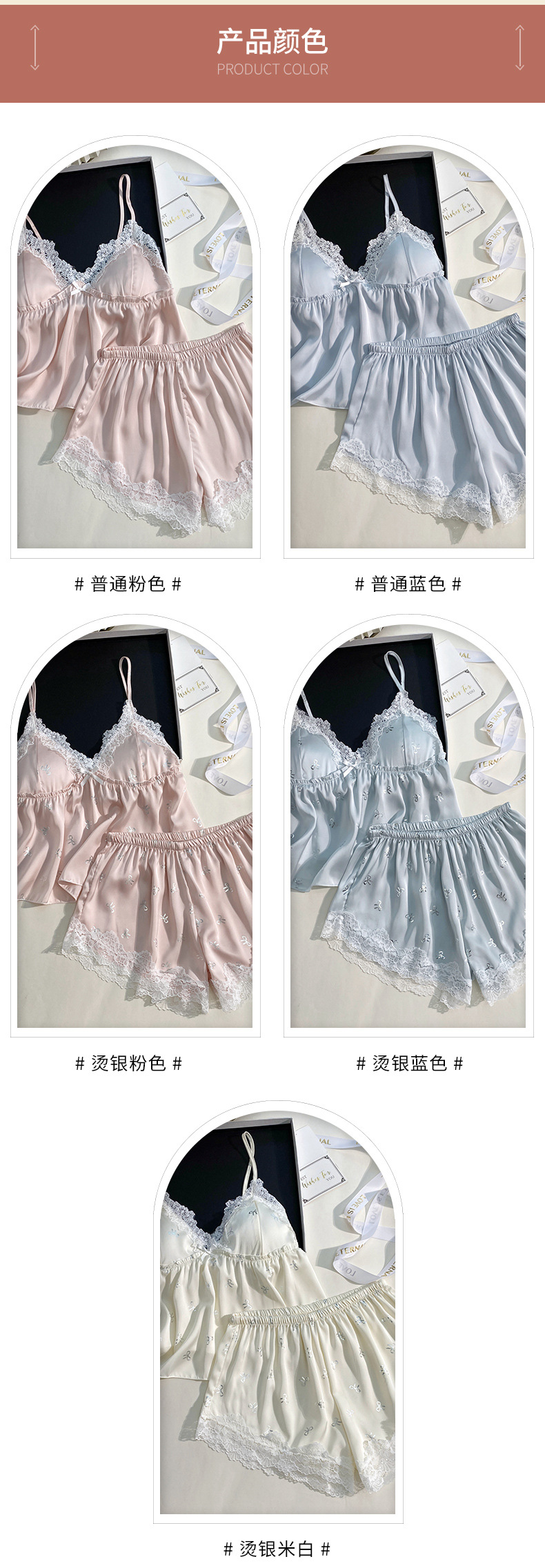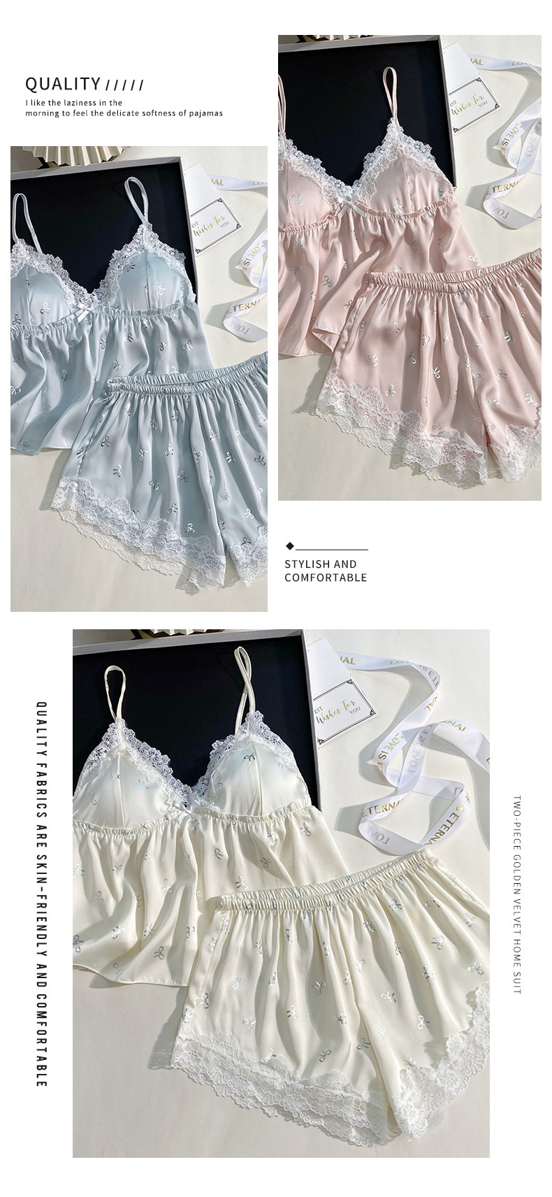 여름 신상 여성용 실크 슬립 잠옷 세트, 실버 프린팅 실크 슬립 반바지, 편안한 홈웨어 투피스 세트스토어 가기