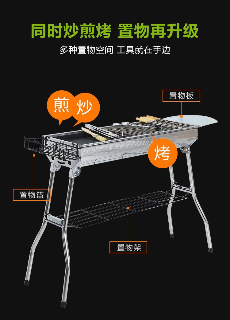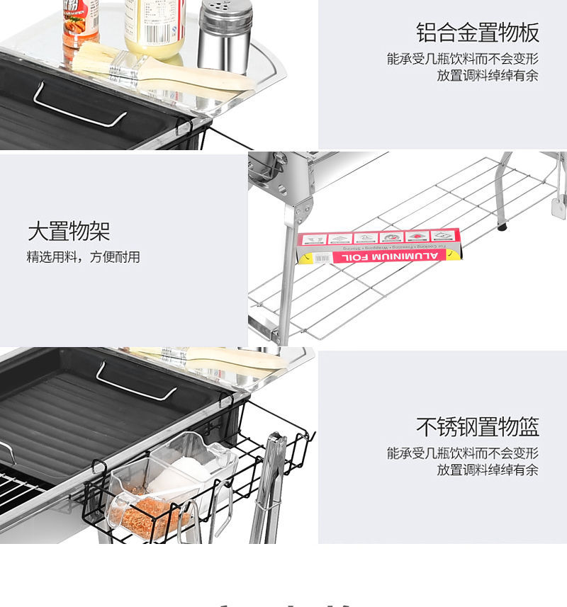 • 스테인레스 스틸 바베큐 그릴 + 보관 랙 + 도구 8개 ⚑