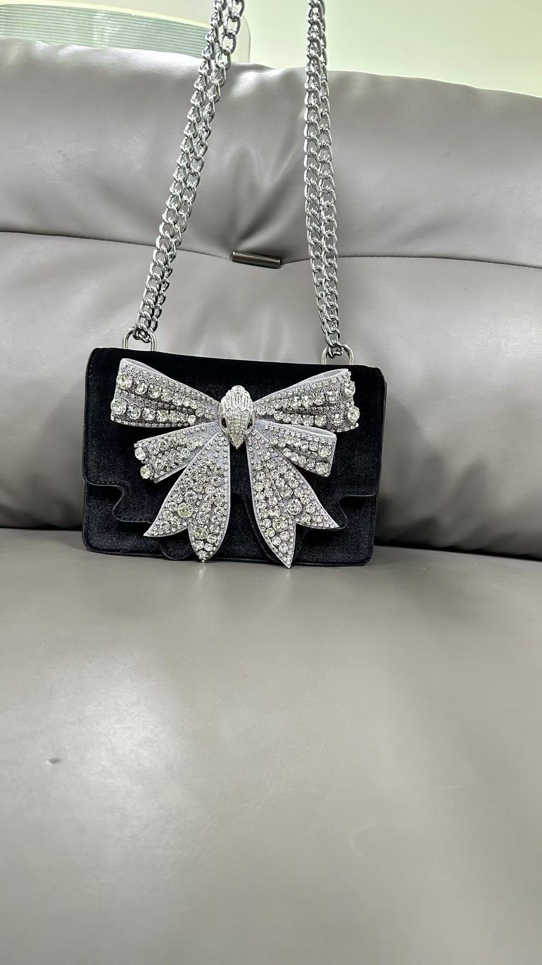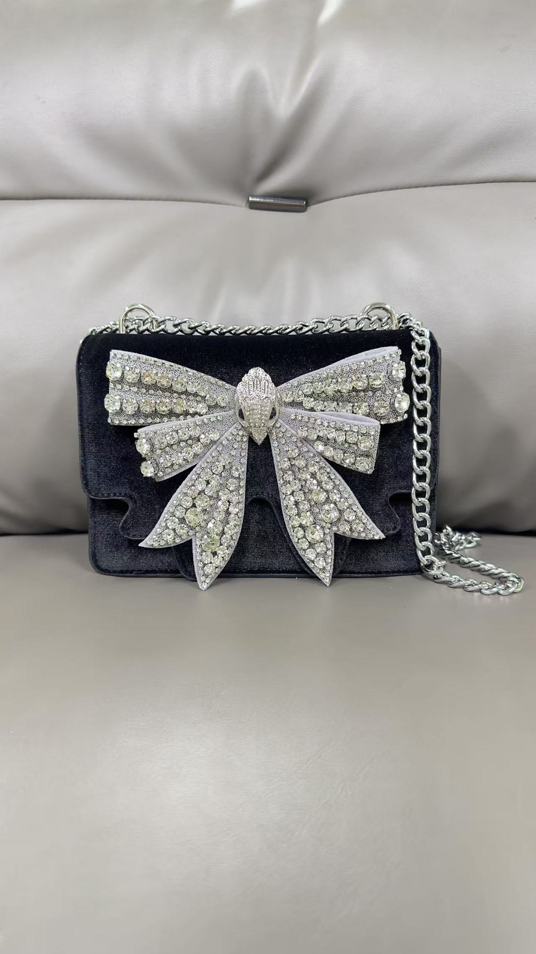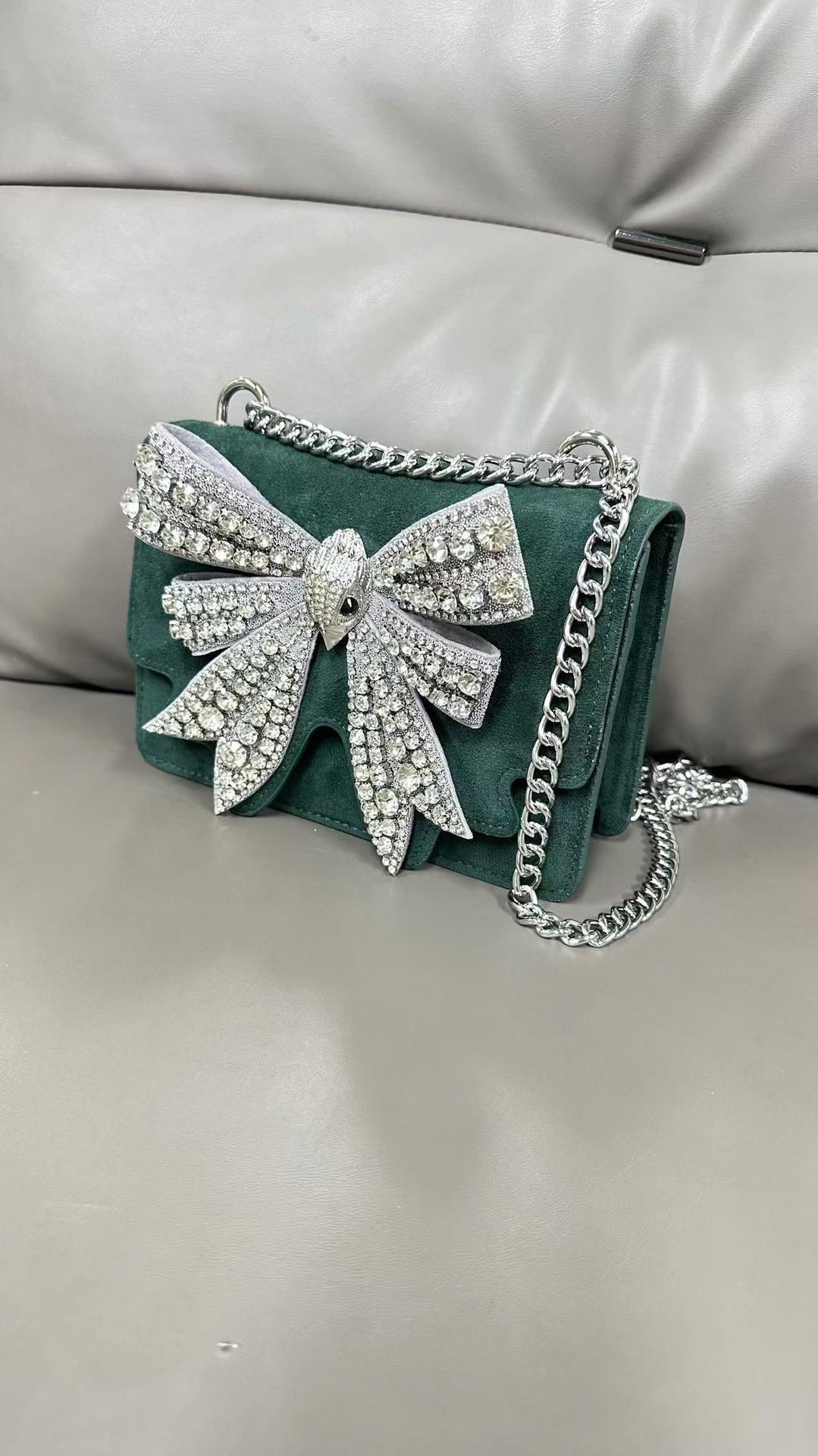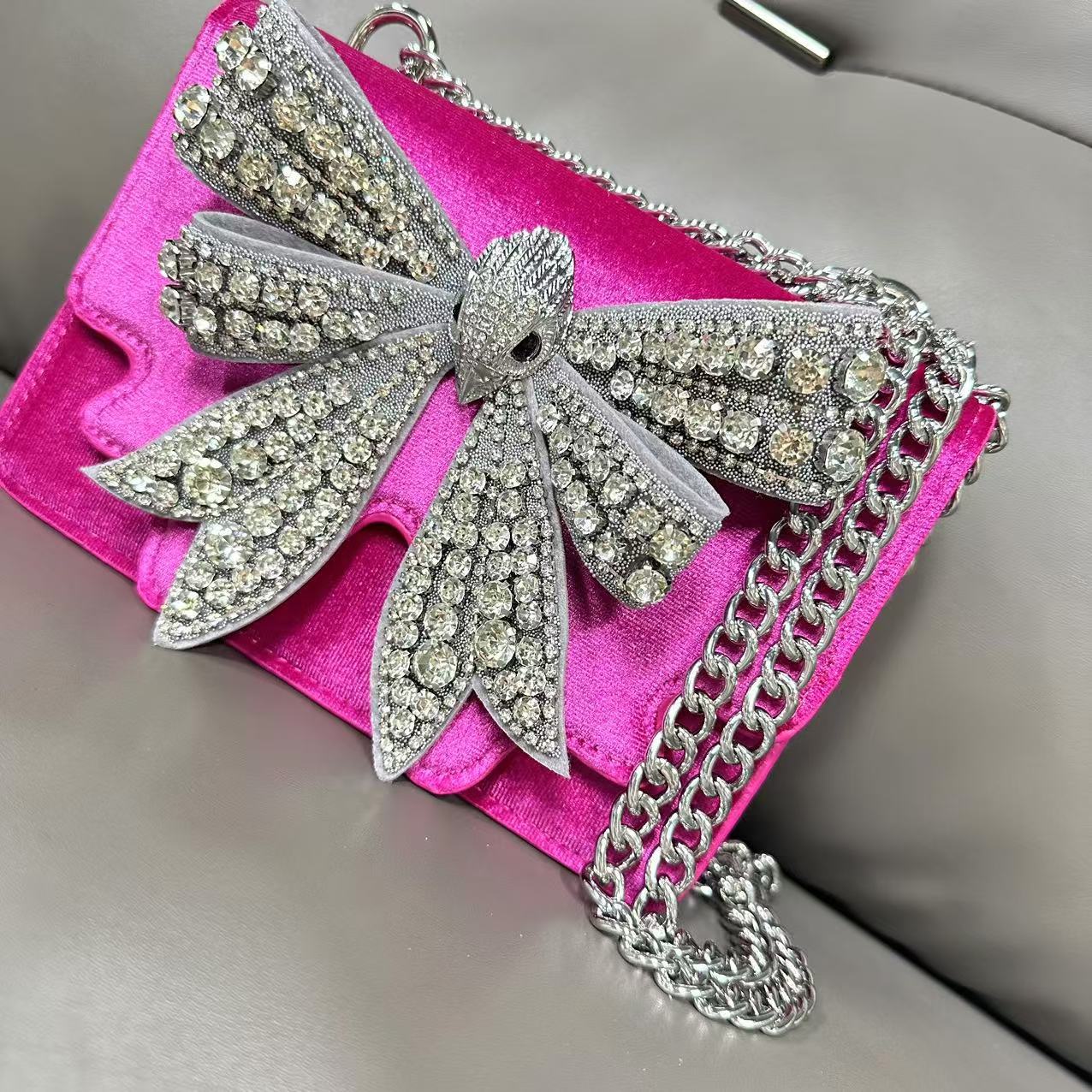 KG 다이아몬드가 박힌 보석 복고풍 나비 매듭 절묘한 패션 연회 핸드백 싱글 숄더 크로스 바디 핸드 캐리 여성용 이브닝 백스토어 가기