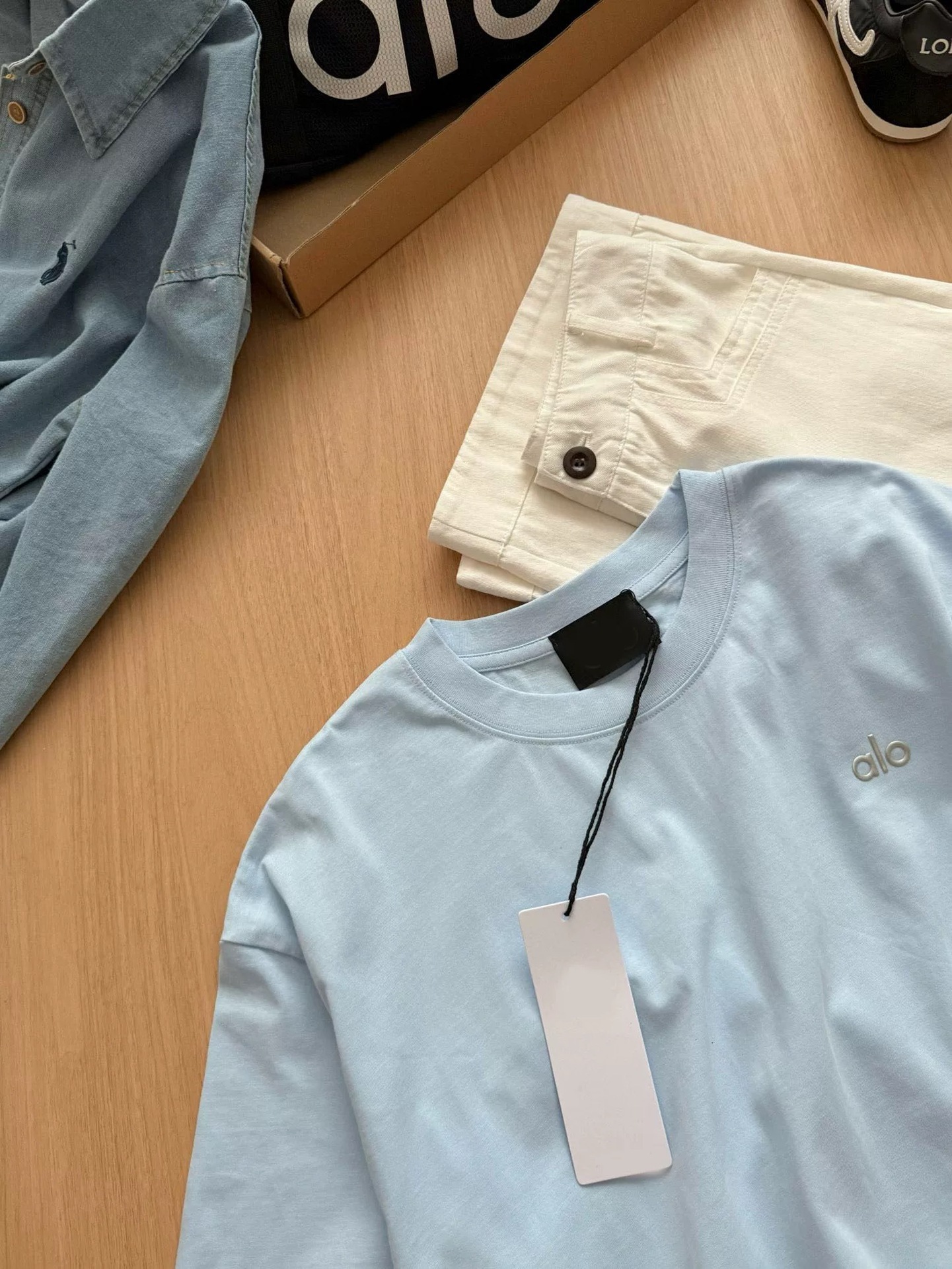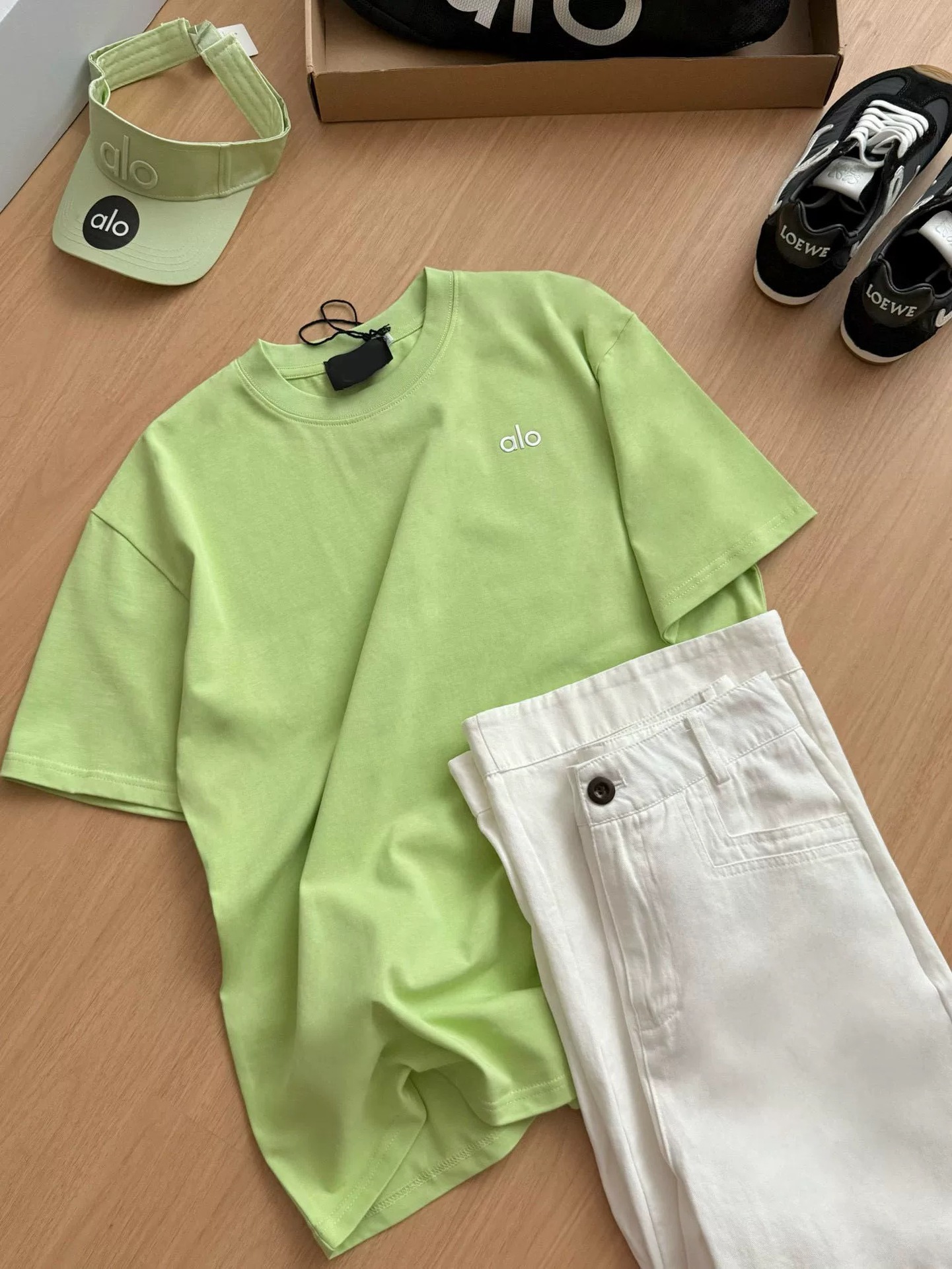 헤비 알로 올바른 버전 실버 라벨 로고 캔디 컬러 심플 반팔 여성 루즈 다용도 캐주얼 티셔츠 2025 여름스토어 가기