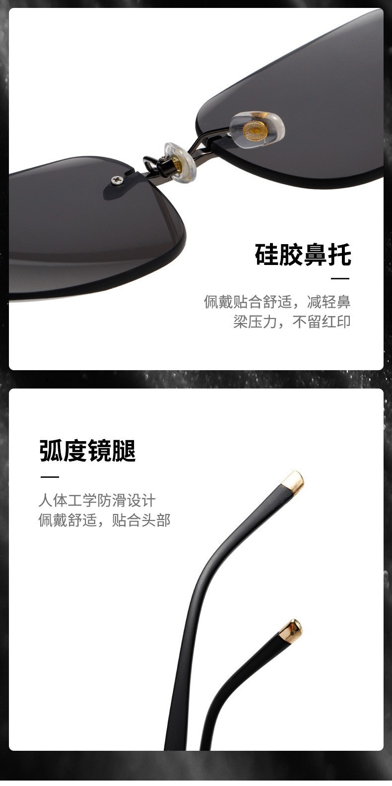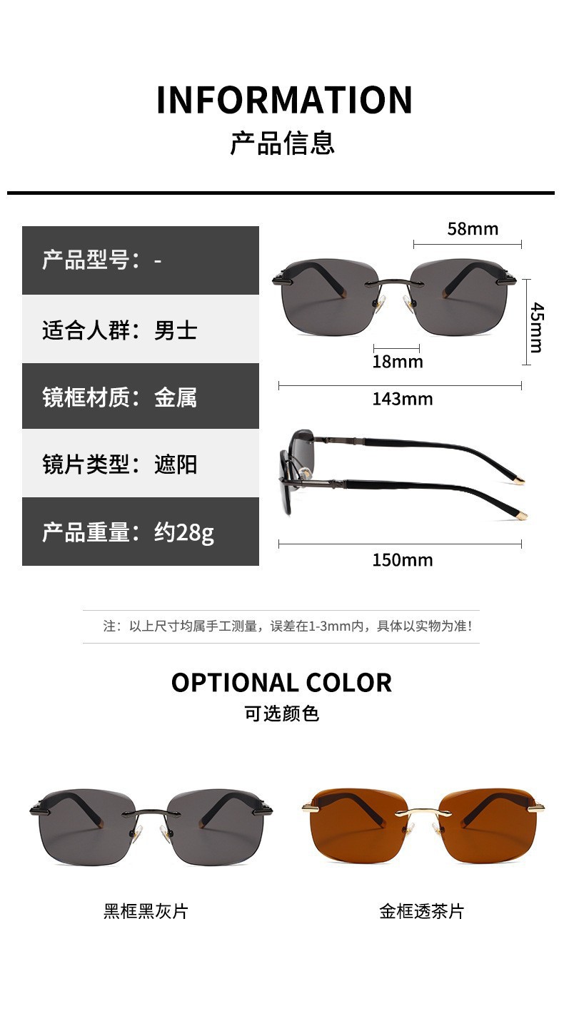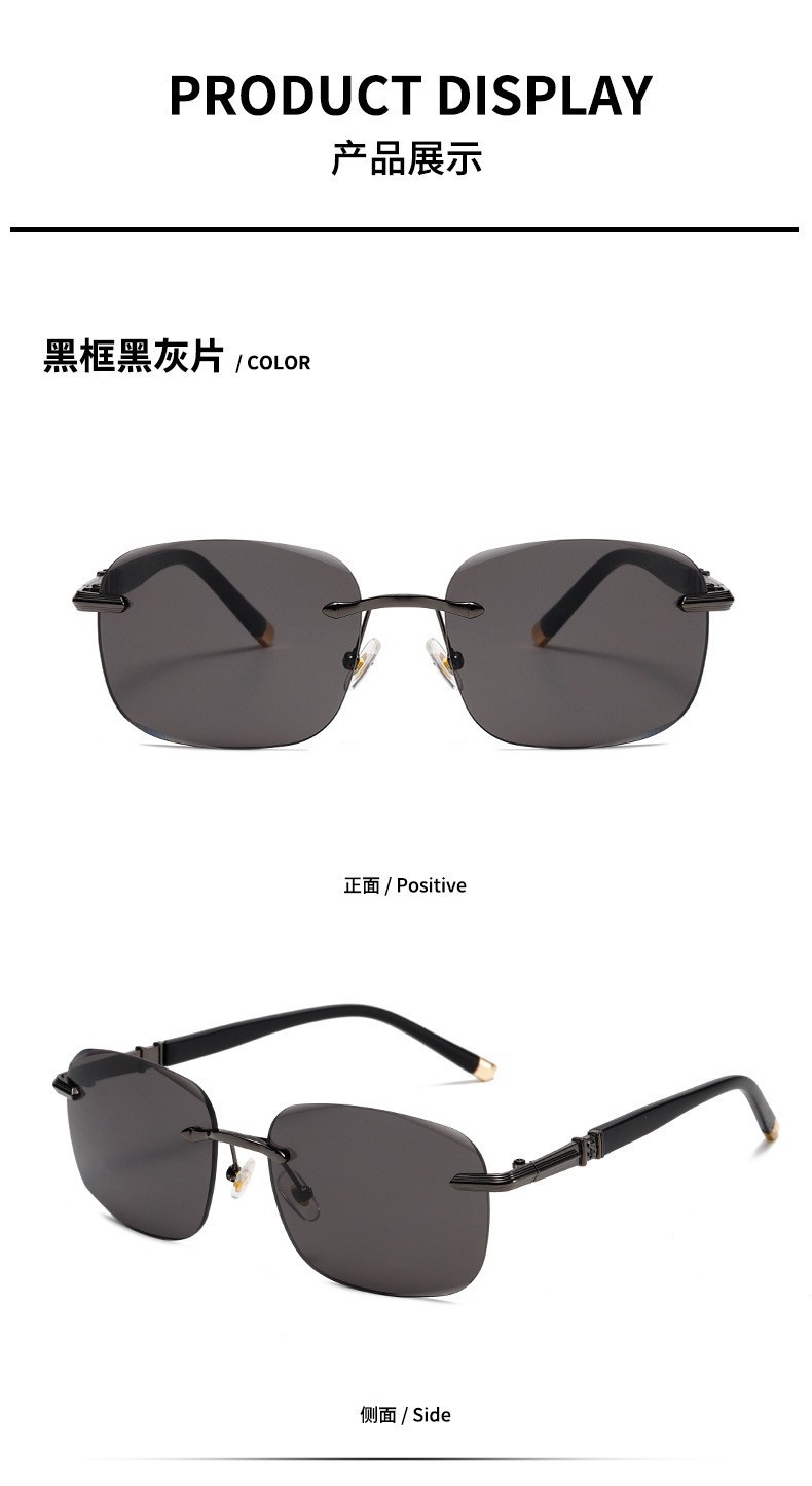 [대외 무역 고급 제품] 남성용 새로운 스타일의 임페리얼 블랙 선글라스, 여성용 무테 컷 에지 운전 및 낚시 선글라스 도매