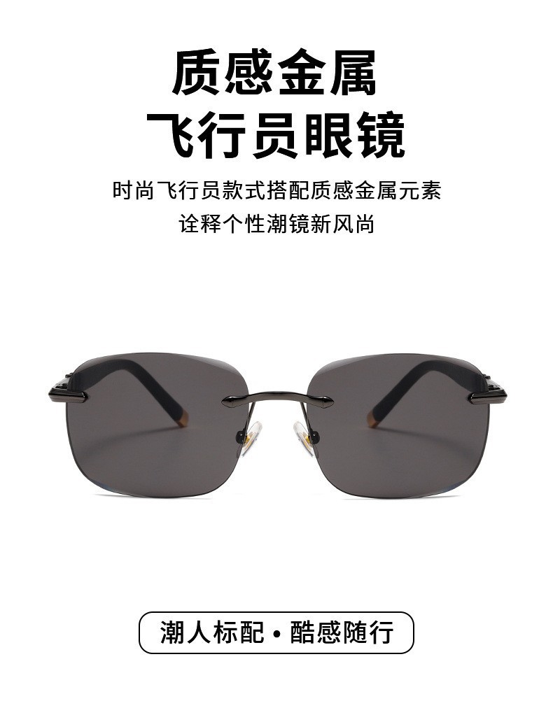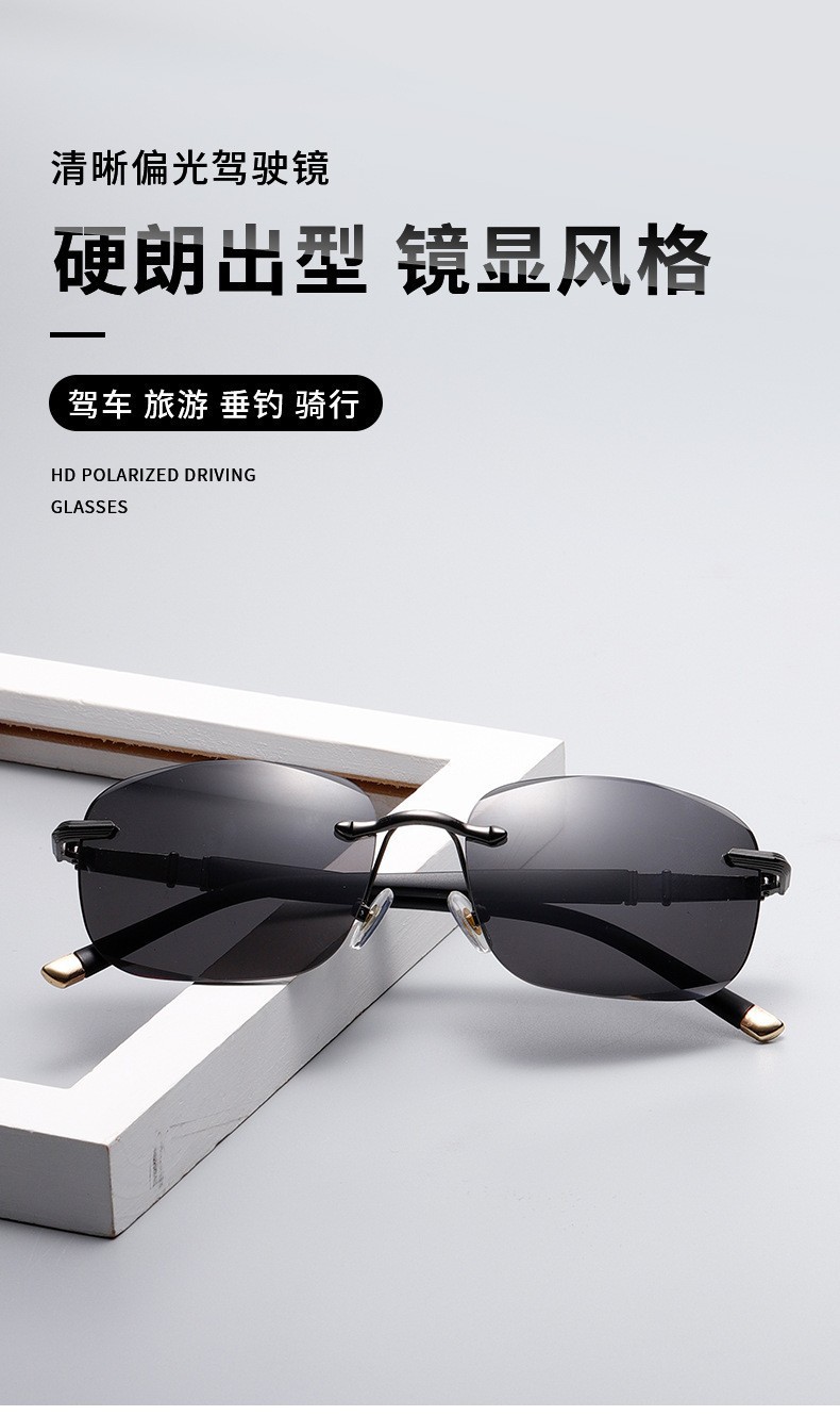 [대외 무역 고급 제품] 남성용 새로운 스타일의 임페리얼 블랙 선글라스, 여성용 무테 컷 에지 운전 및 낚시 선글라스 도매스토어 가기
