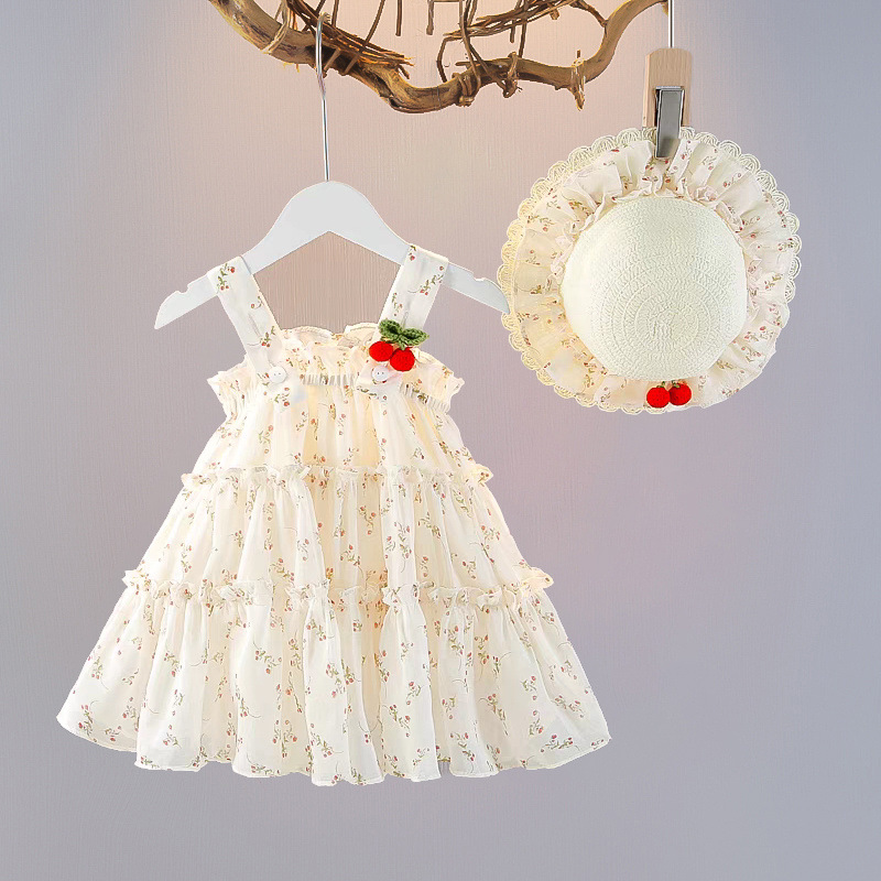 여자 드레스 여름 드레스 2025 새로운 스타일 서스펜더 꽃 공주 소녀 케이크 드레스 조끼 스커트 아동 의류
