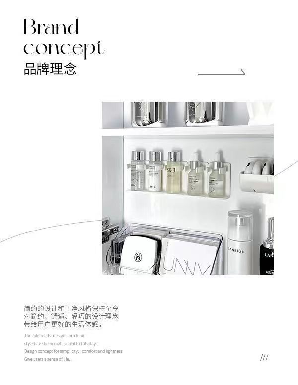 화장품과 스킨케어 제품을 보관할 수 있는 욕실용품을 위한 구멍 없는 거울 캐비닛 연속 선반