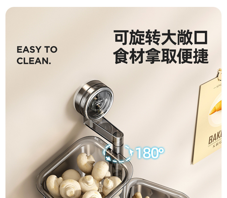 주방 캐비닛 양파, 생강, 마늘 보관함 흡착식 선반 양념통 무타공 벽걸이 바구니스토어 가기