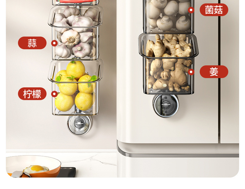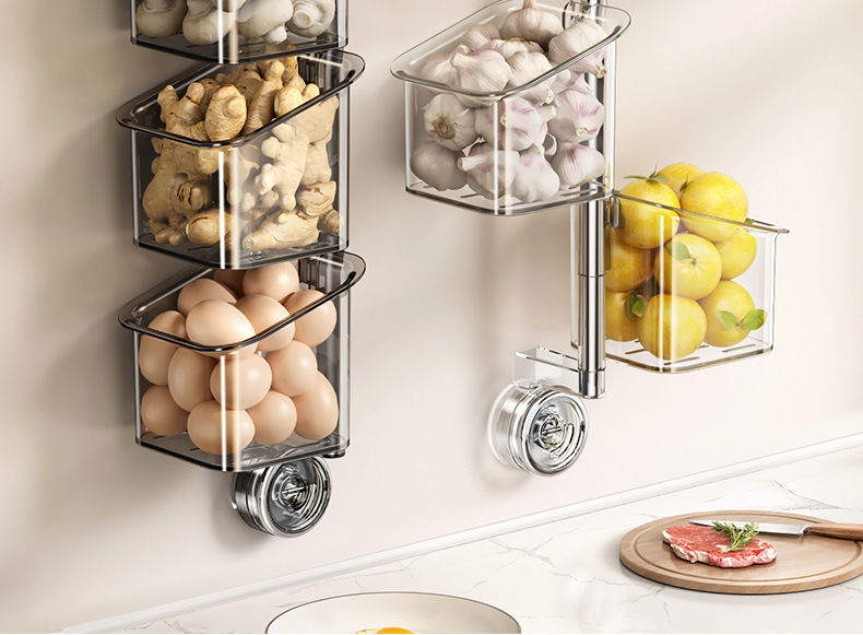 주방 캐비닛 양파, 생강, 마늘 보관함 흡착식 선반 양념통 무타공 벽걸이 바구니