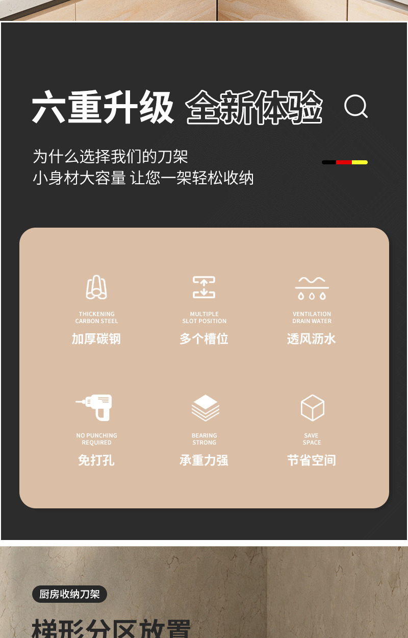 칼걸이, 다기능 주방칼, 도마, 도마걸이, 벽걸이 젓가락 및 칼 일체형 수납선반