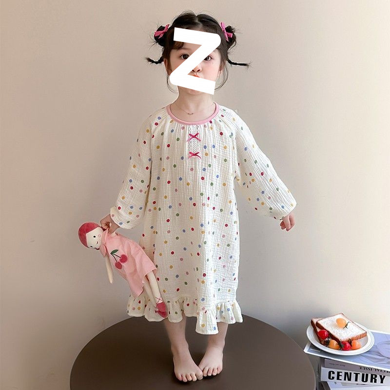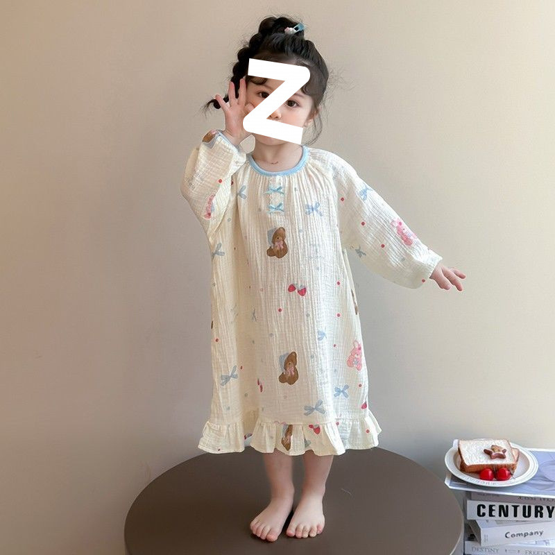 2025 새로운 여자 잠옷 순수 코튼 거즈 아기 소녀 긴 소매 어린이 잠옷 소녀 봄, 가을 공주 홈 드레스