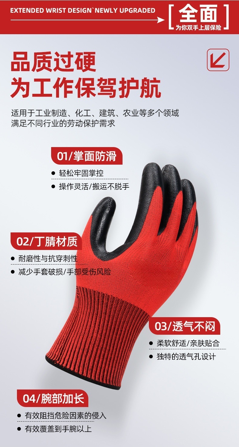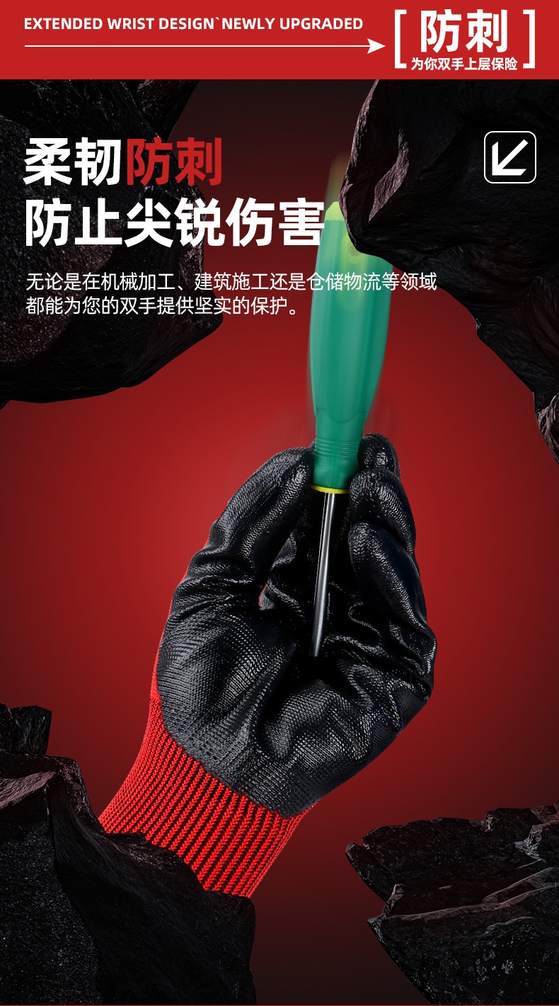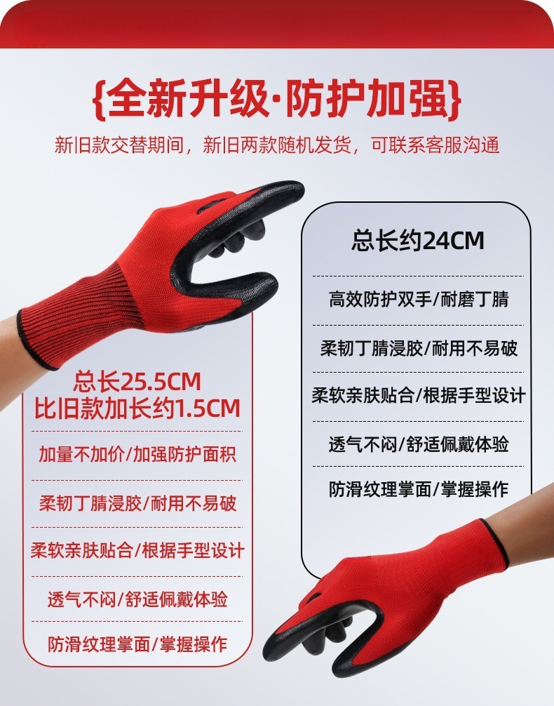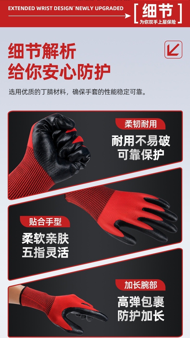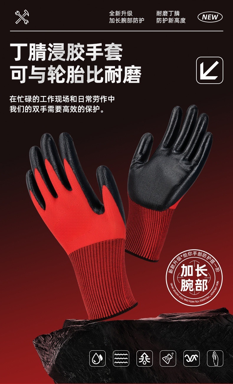 고무 함침 노동 보호 장갑, 내마모성, 미끄럼 방지 건설 현장 작업 장갑, 주름진 미끄럼 방지 니트릴 보호 장갑 도매스토어 가기