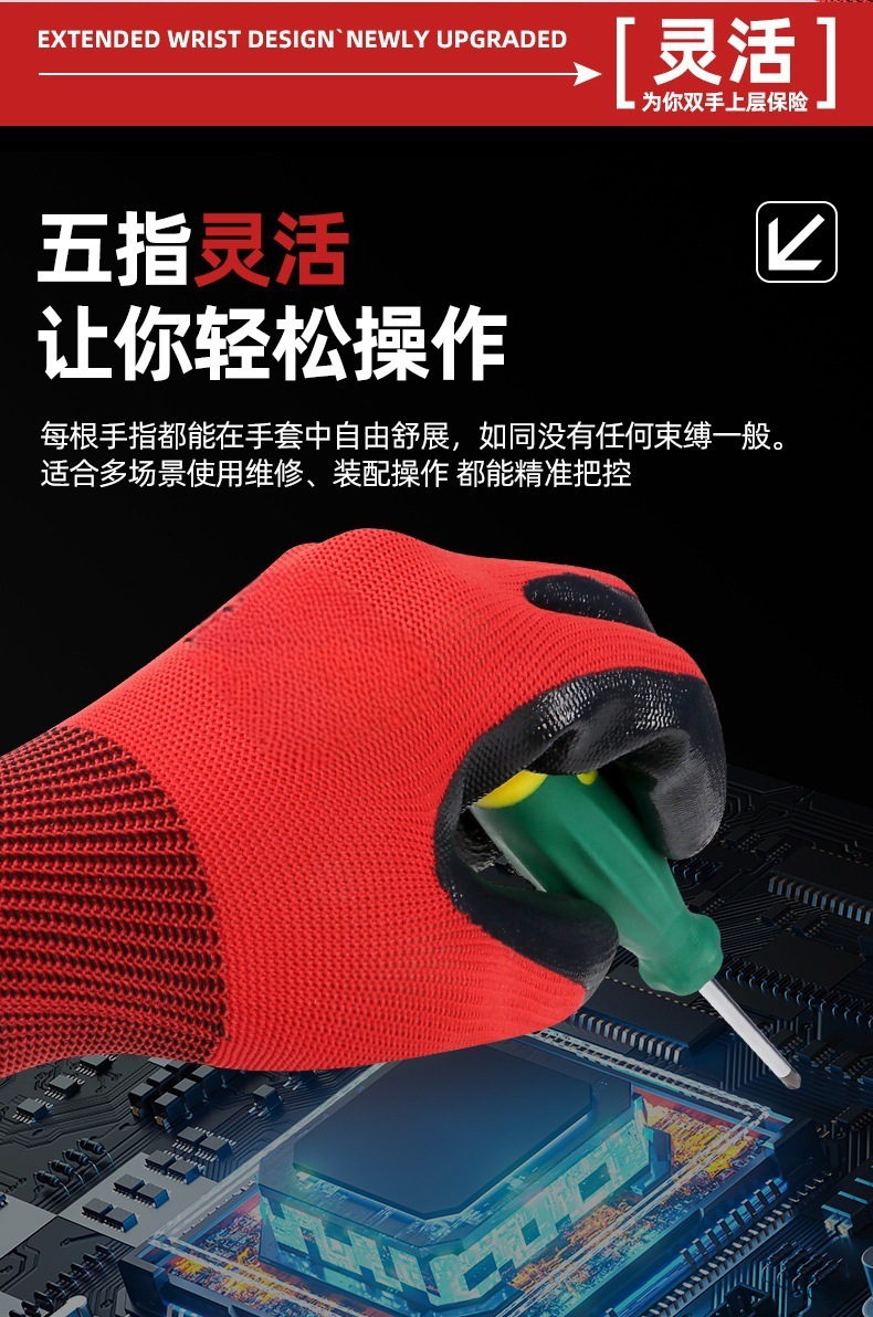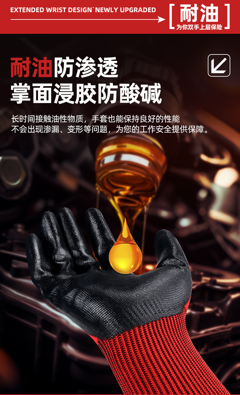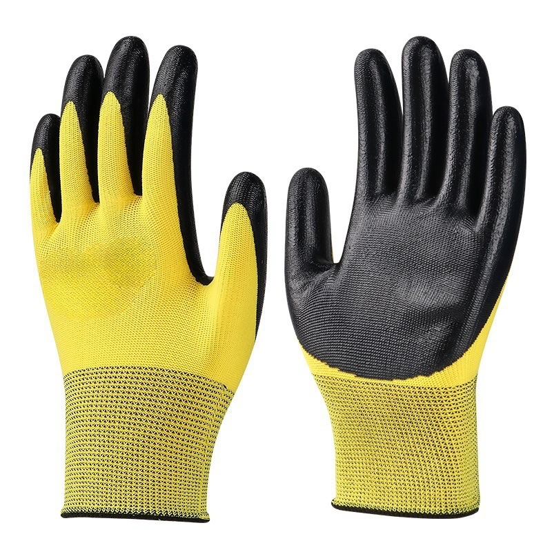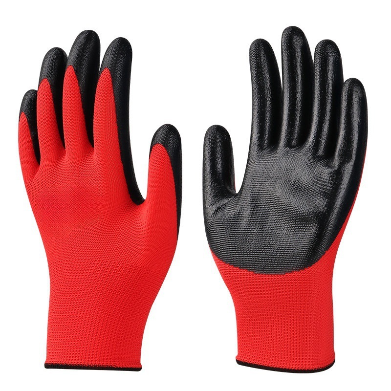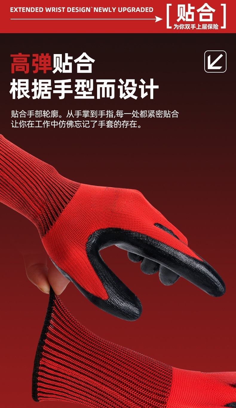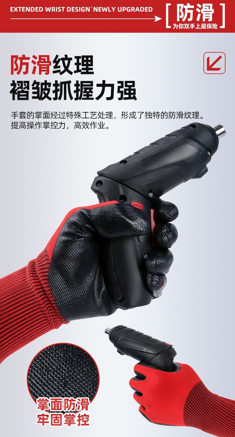 고무 함침 노동 보호 장갑, 내마모성, 미끄럼 방지 건설 현장 작업 장갑, 주름진 미끄럼 방지 니트릴 보호 장갑 도매