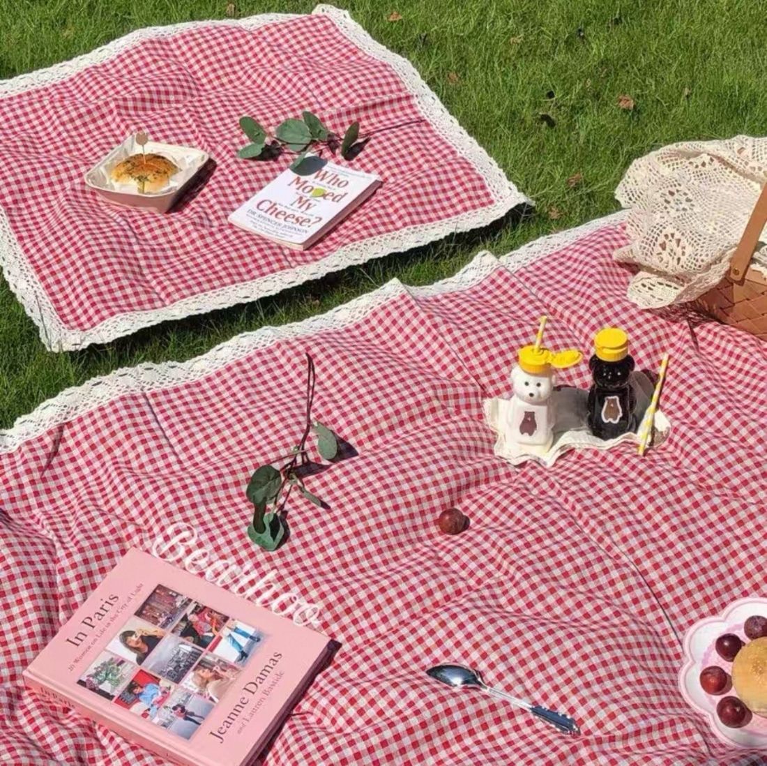 봄 나들이 야외 피크닉 매트 레이스 붉은 격자 무늬 두꺼운 방습 휴대용 바닥 매트 캠핑 사진 해변 매트