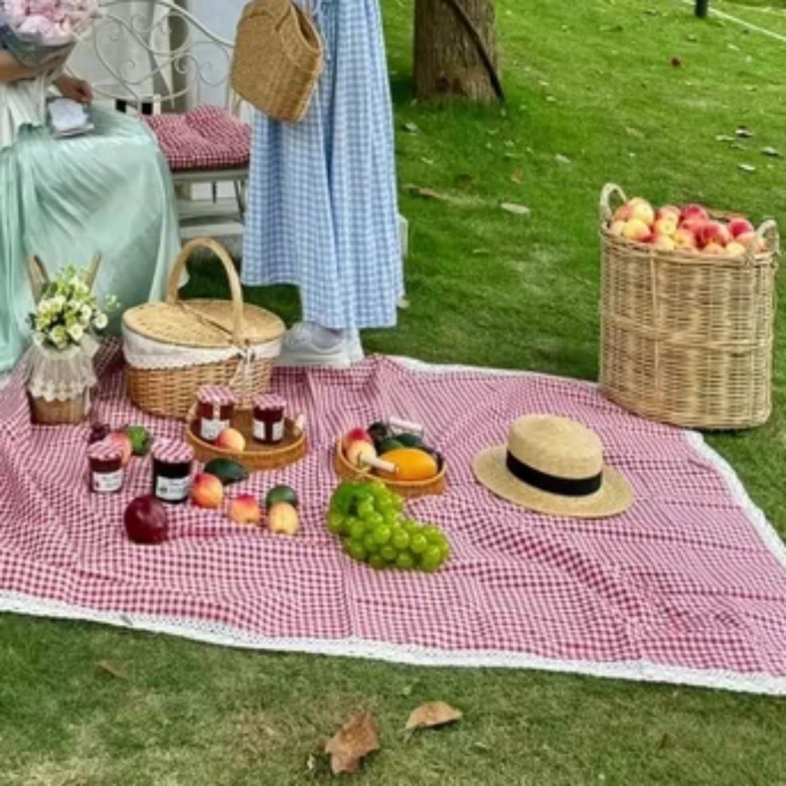 봄 나들이 야외 피크닉 매트 레이스 붉은 격자 무늬 두꺼운 방습 휴대용 바닥 매트 캠핑 사진 해변 매트스토어 가기