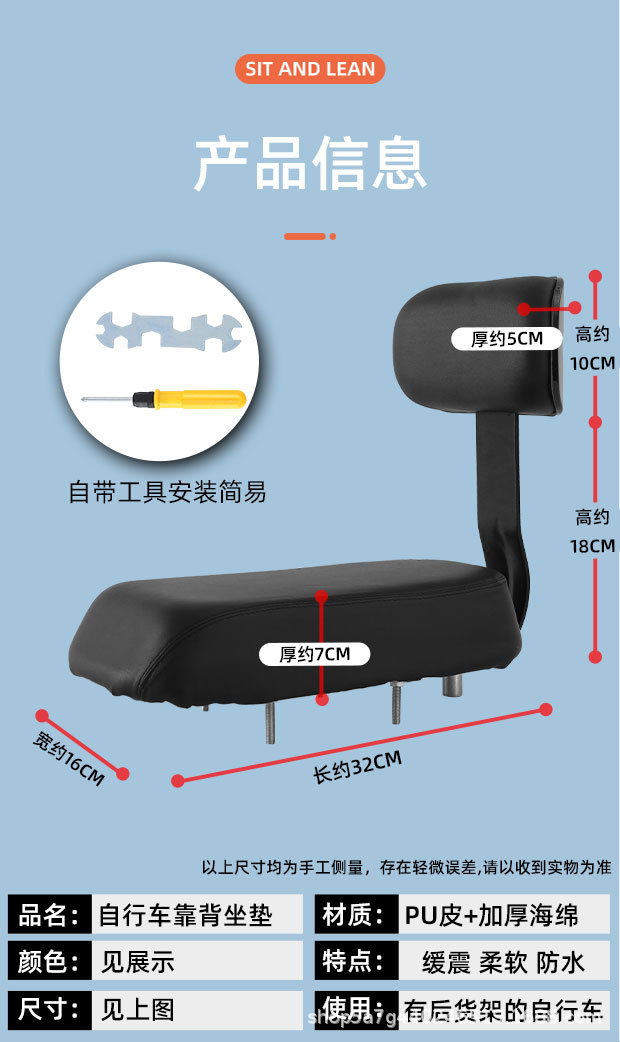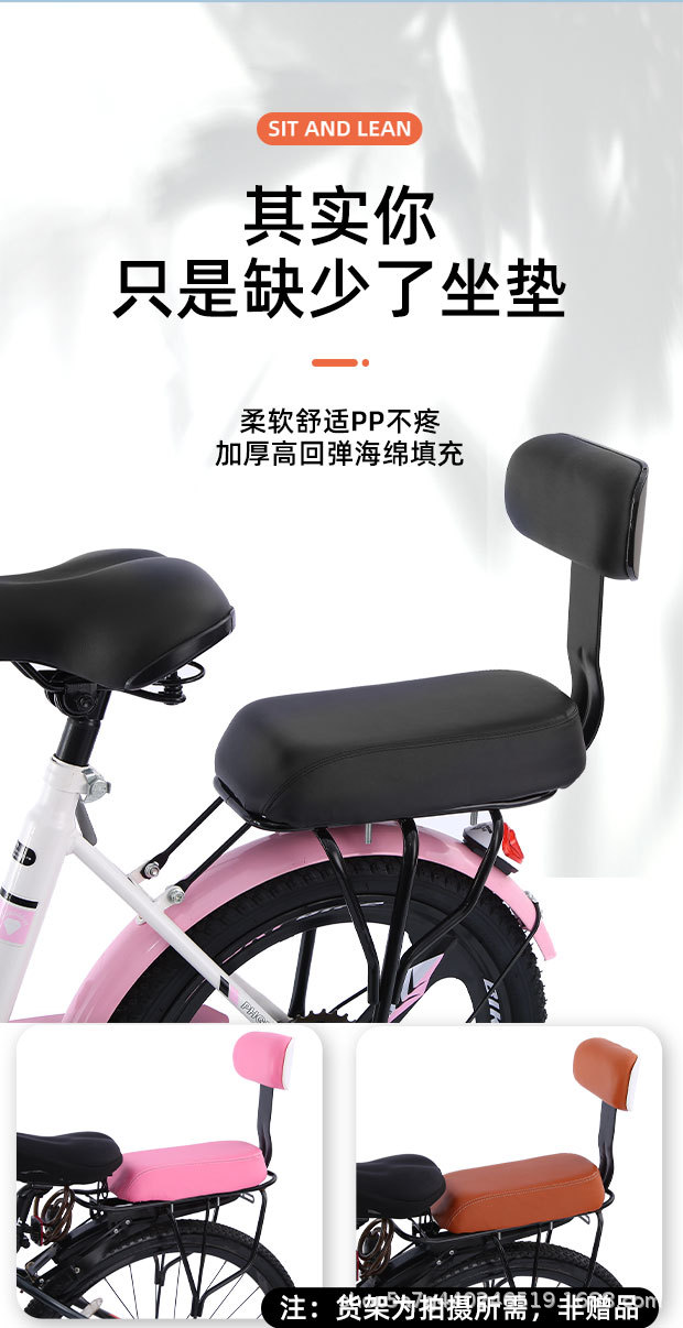 등받이가 있는 자전거 시트 쿠션, 산악 자전거 뒷좌석 쿠션, 두껍고 매우 부드럽고 편안한 어린이용 시트 뒷좌석 쿠션