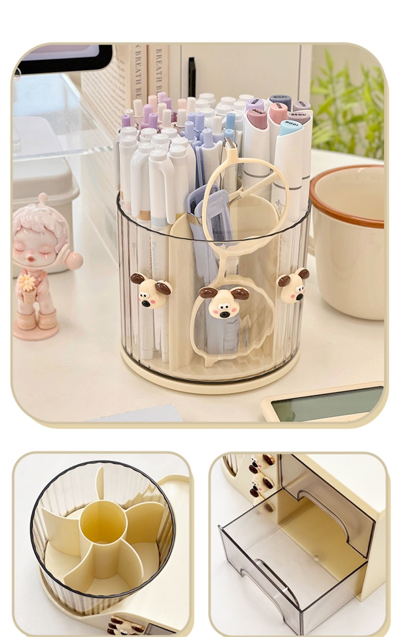 펜 홀더 책상 문구 보관함 보관함 사무실 책상 워크 스테이션 보관 회전 데스크탑 학생 소녀스토어 가기