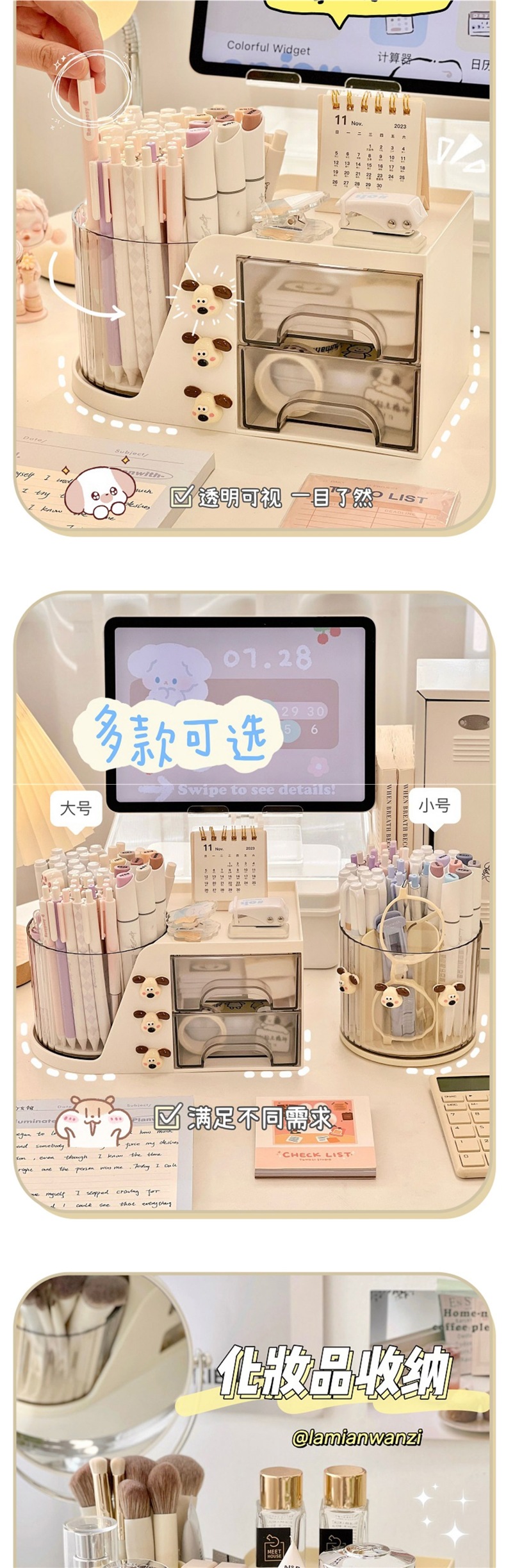펜 홀더 책상 문구 보관함 보관함 사무실 책상 워크 스테이션 보관 회전 데스크탑 학생 소녀