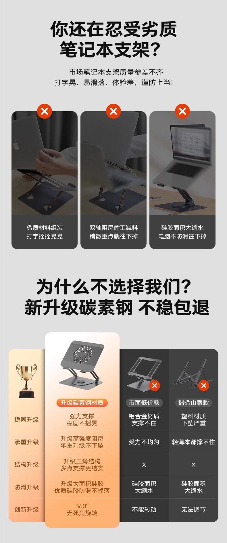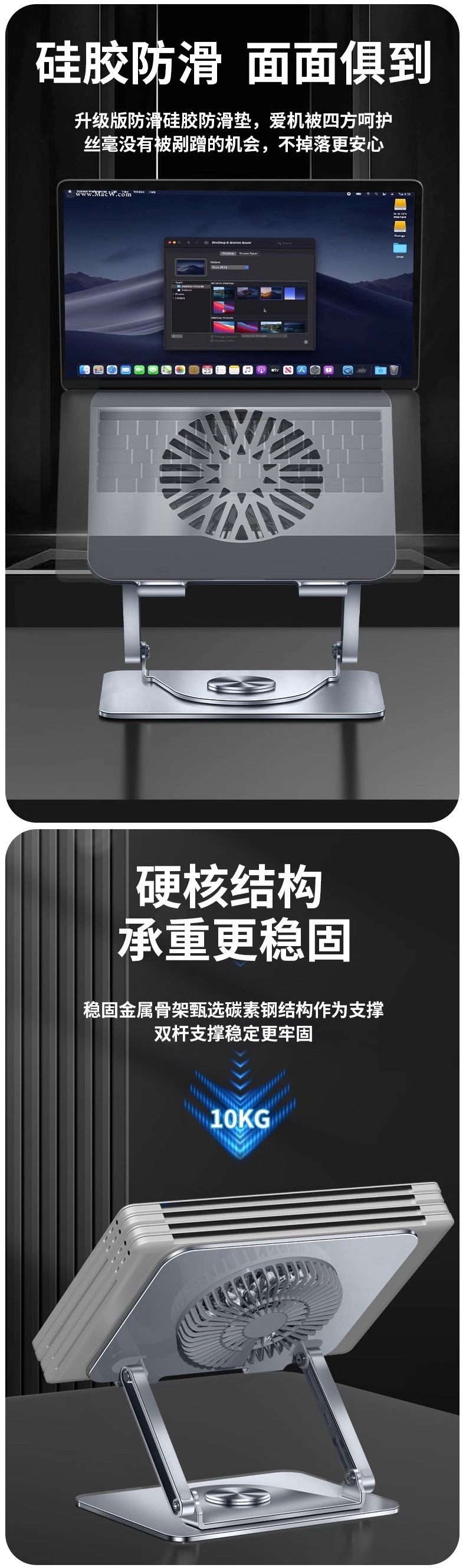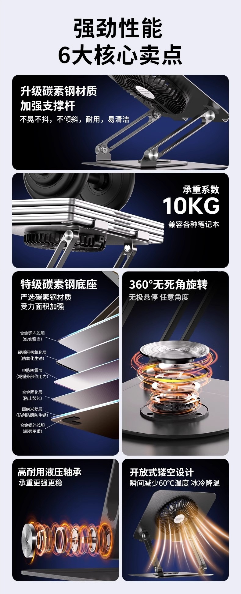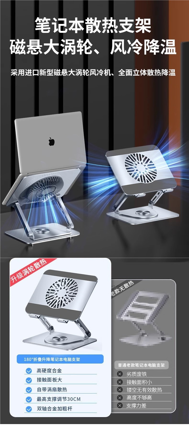 인기 판매 컴퓨터 스탠드 노트북 냉각 베이스 360도 회전식 데스크탑 높이 조절식 리프팅 지지대